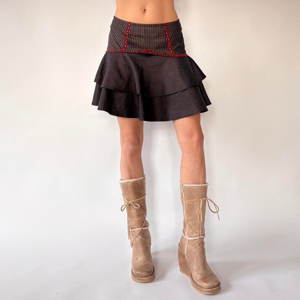 Sophie wears a modern size XS (5’6” tall / 25” waist / 35” hips / 32B bust). This skirt fits her well.