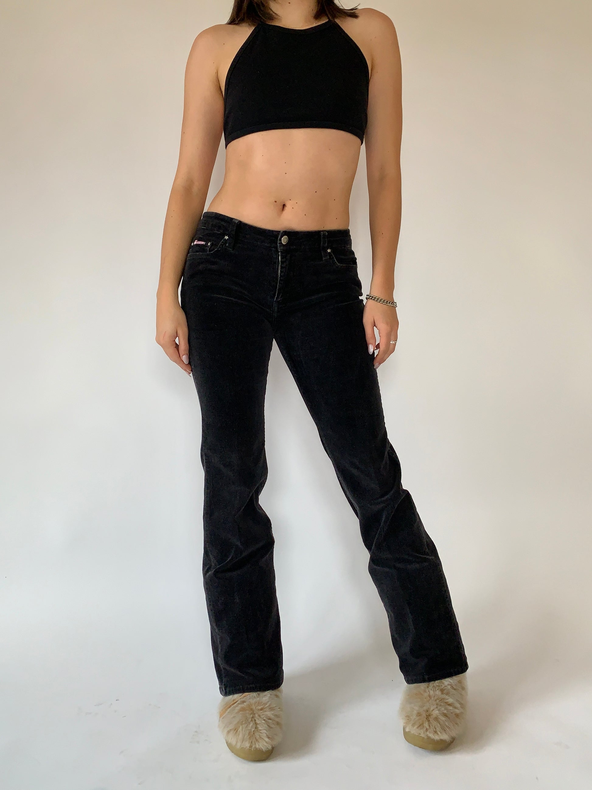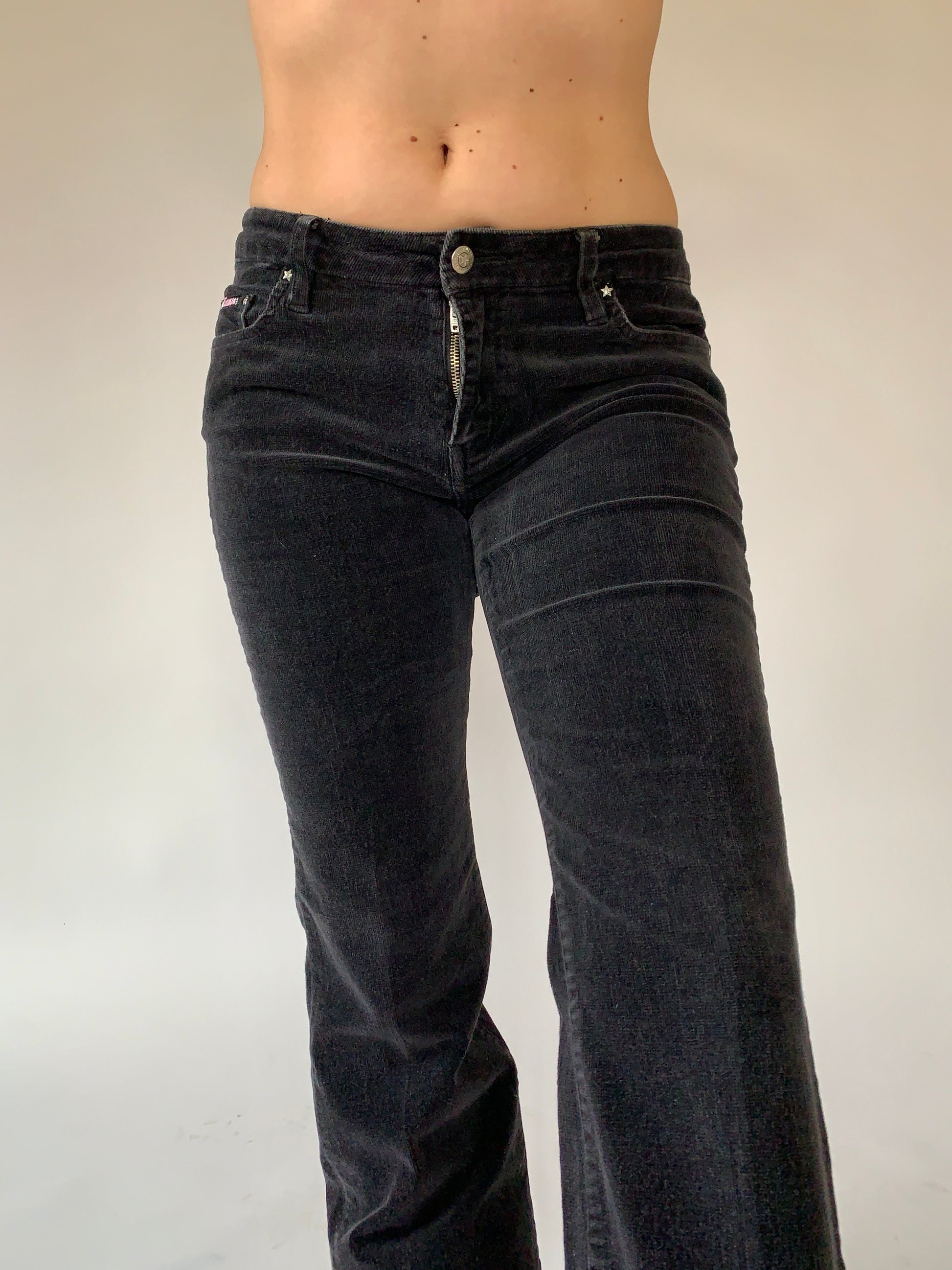 2000s corduroys by Bubblegum USA. Low rise with flare. In black. Material is a cotton spandex blend with stretch. Great condition. Tagged size 9/10, but runs small.
