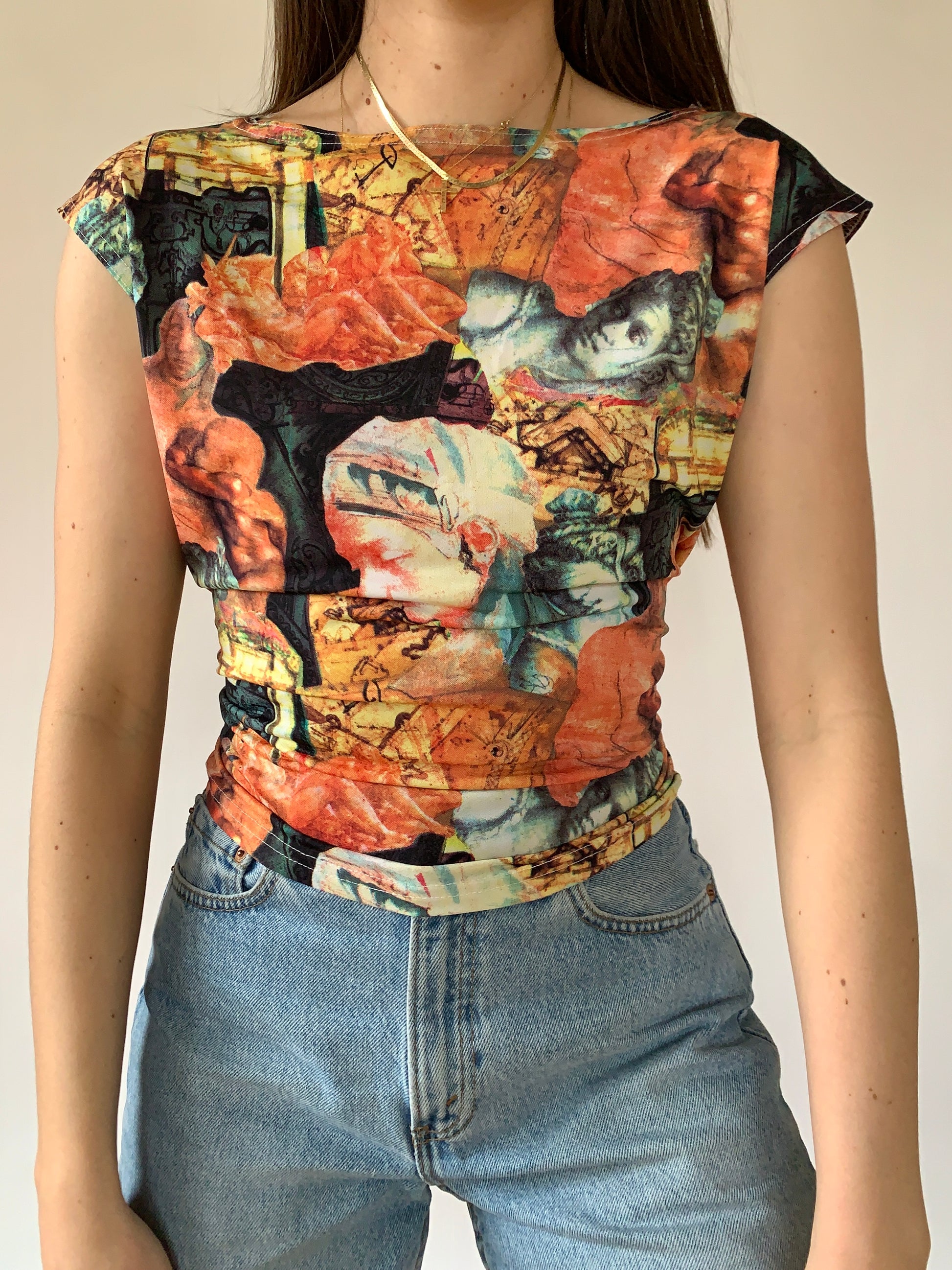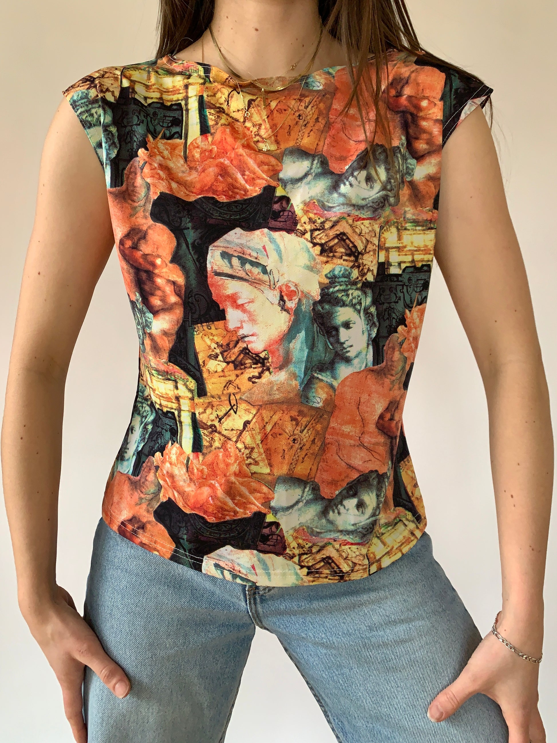 2000s novelty print tank. Excellent condition. Material has stretch. Best fits size M-L. Shown pinned on size XS.