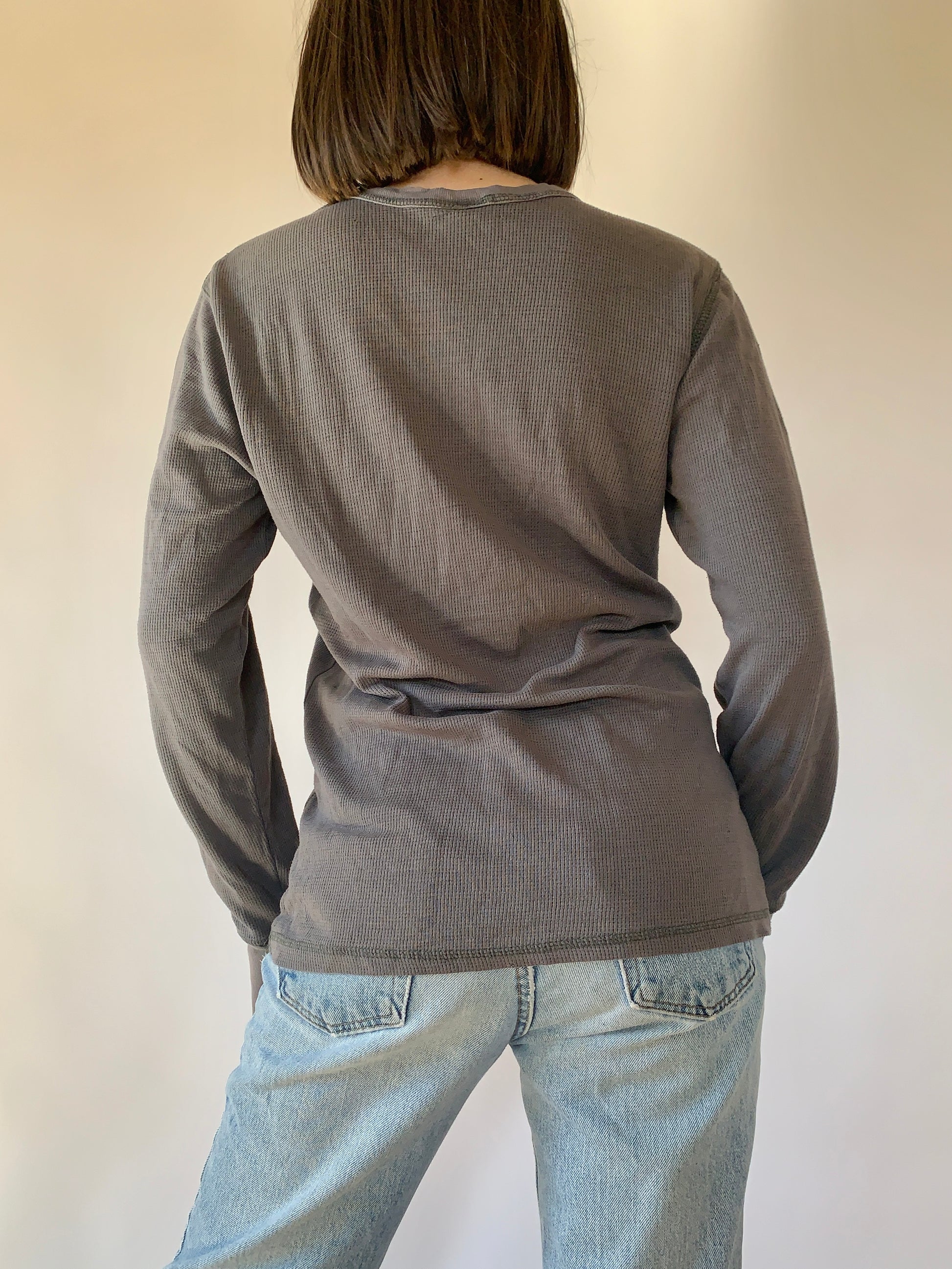 2000s skull printed waffle longsleeve. In gray. Visibly worn condition. Best fits size L. Shown oversized on model.