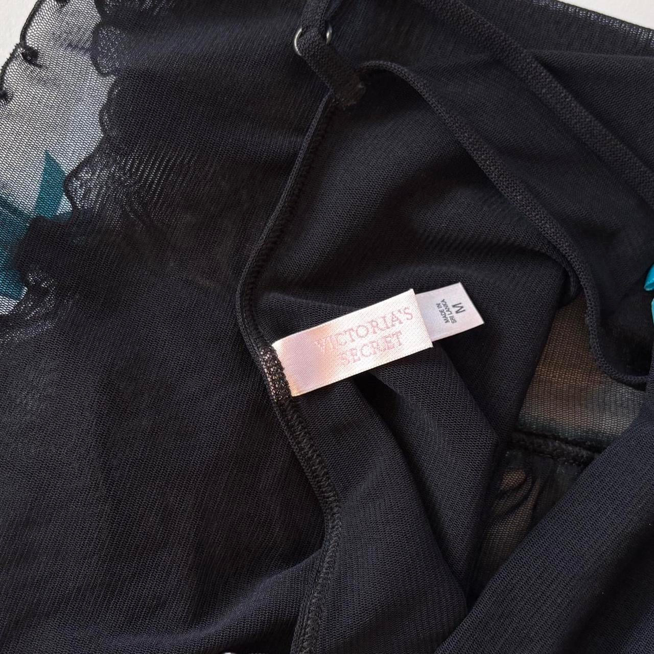 - Black sheer & stretchy mesh with blue ribbon detail
