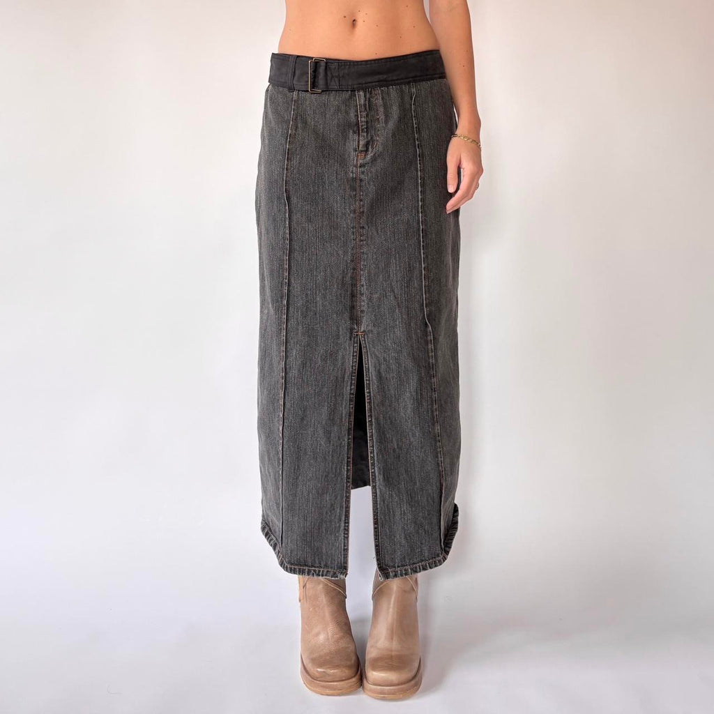 Sophie wears a modern size XS (5’6” tall / 25” waist / 35” hips / 32B bust). This skirt fits her well when styled low rise.