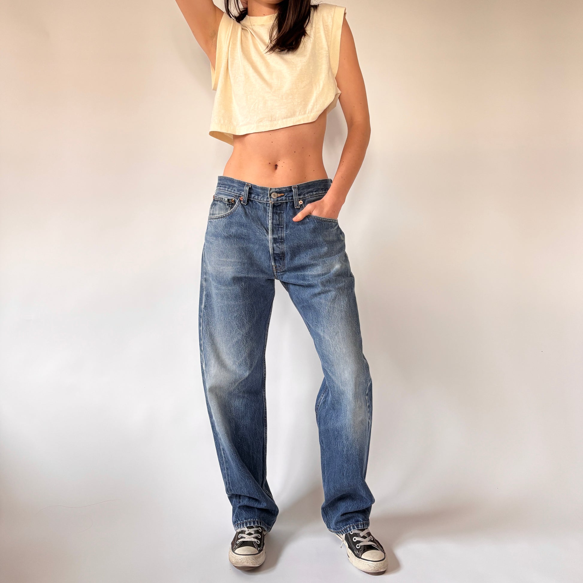 Her measurements: 25” high waist, 29” mid waist, 31” low waist, 35” hips, 32B bust.