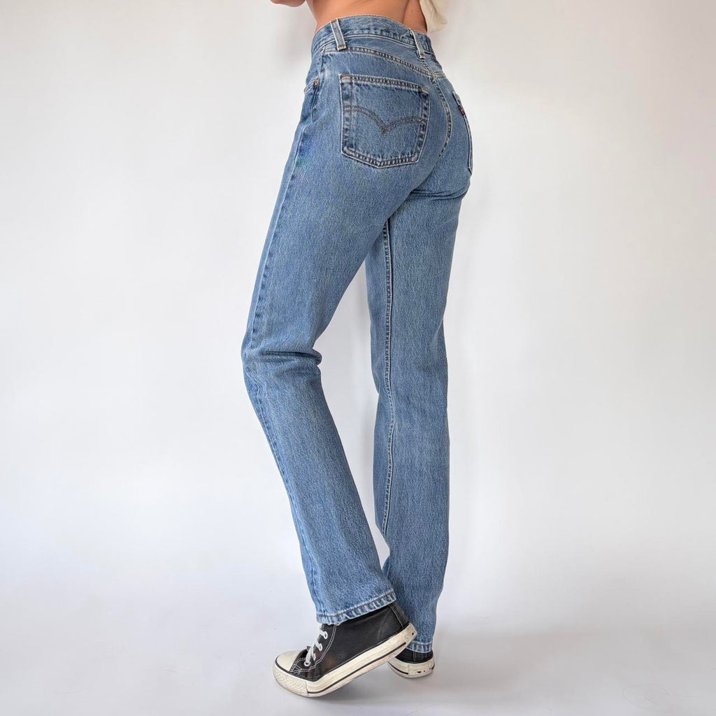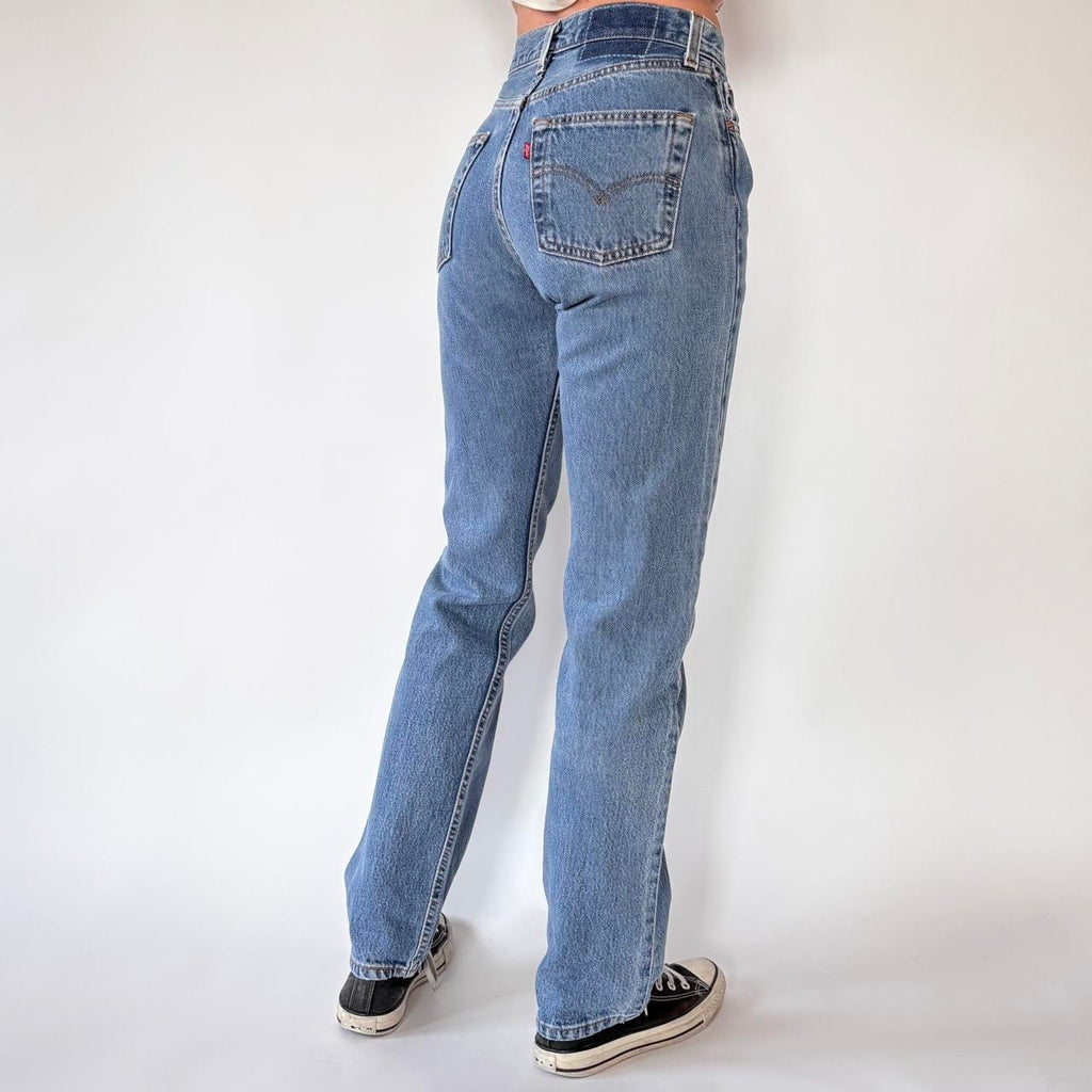 Sophie wears a modern size XS (5’6” tall / 25” waist / 35” hips / 32B bust). These jeans fit her well.