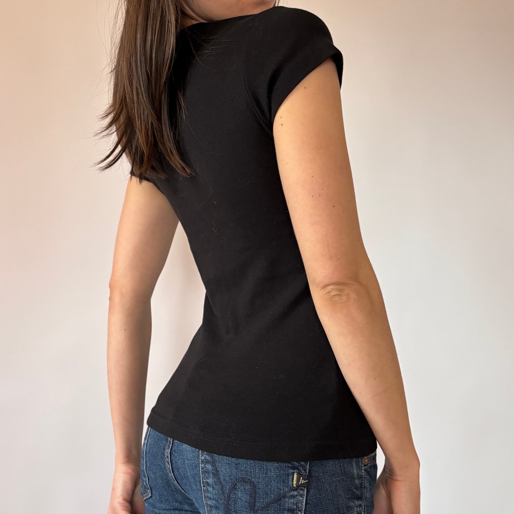 Her measurements: 25” high waist, 29” mid waist, 31” low waist, 35” hips, 32B bust.