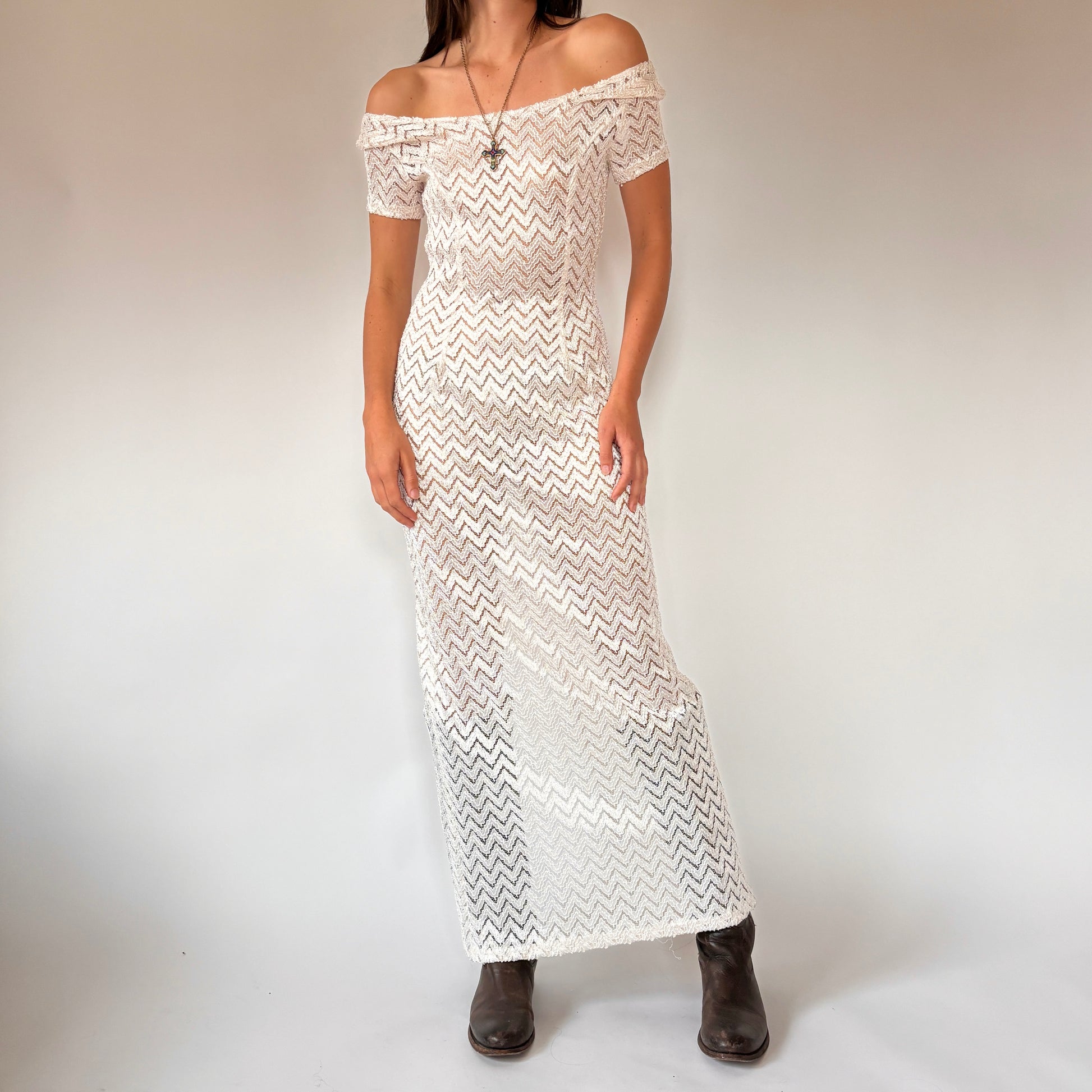 90s Sheer Cream Lace Maxi Dress (S/M)