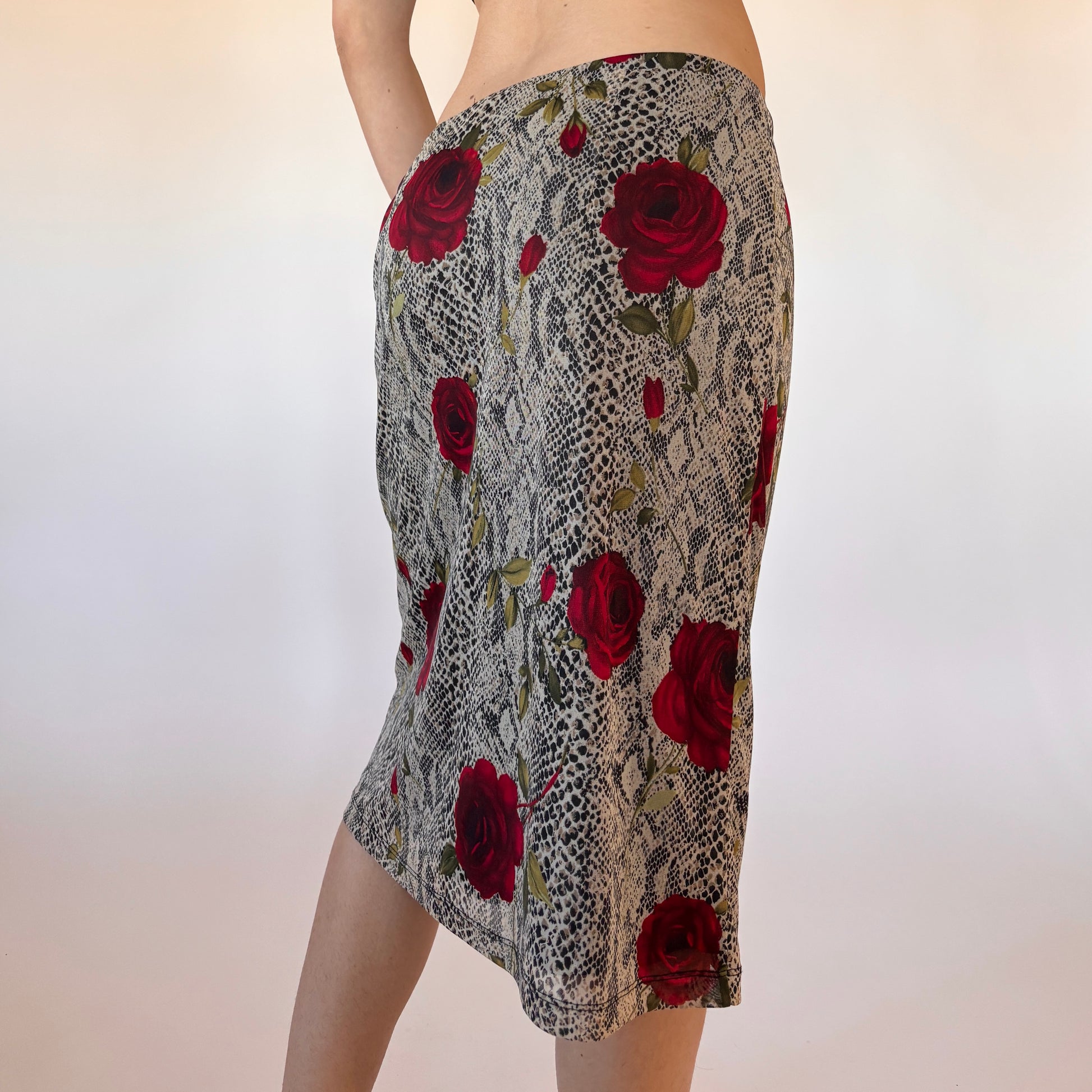 90s Snakeskin & Rose Mesh Midi Skirt (M)