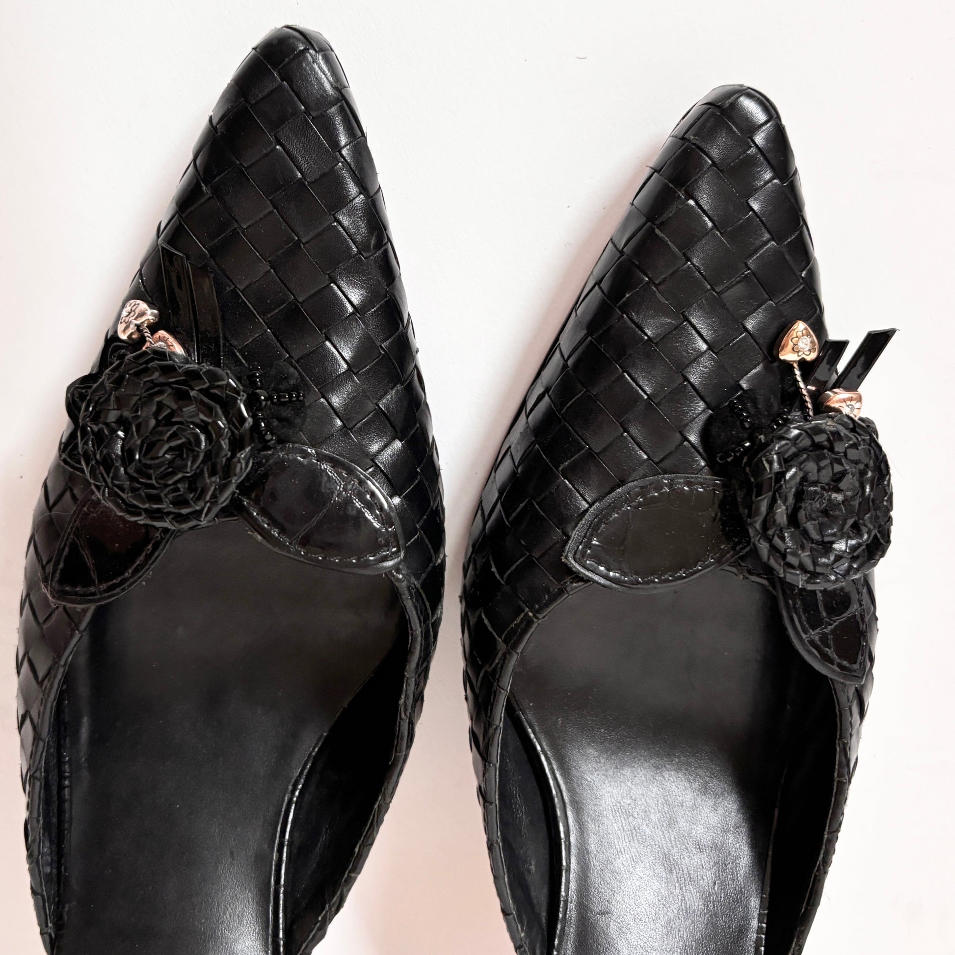 90s Woven Leather Kitten Heels