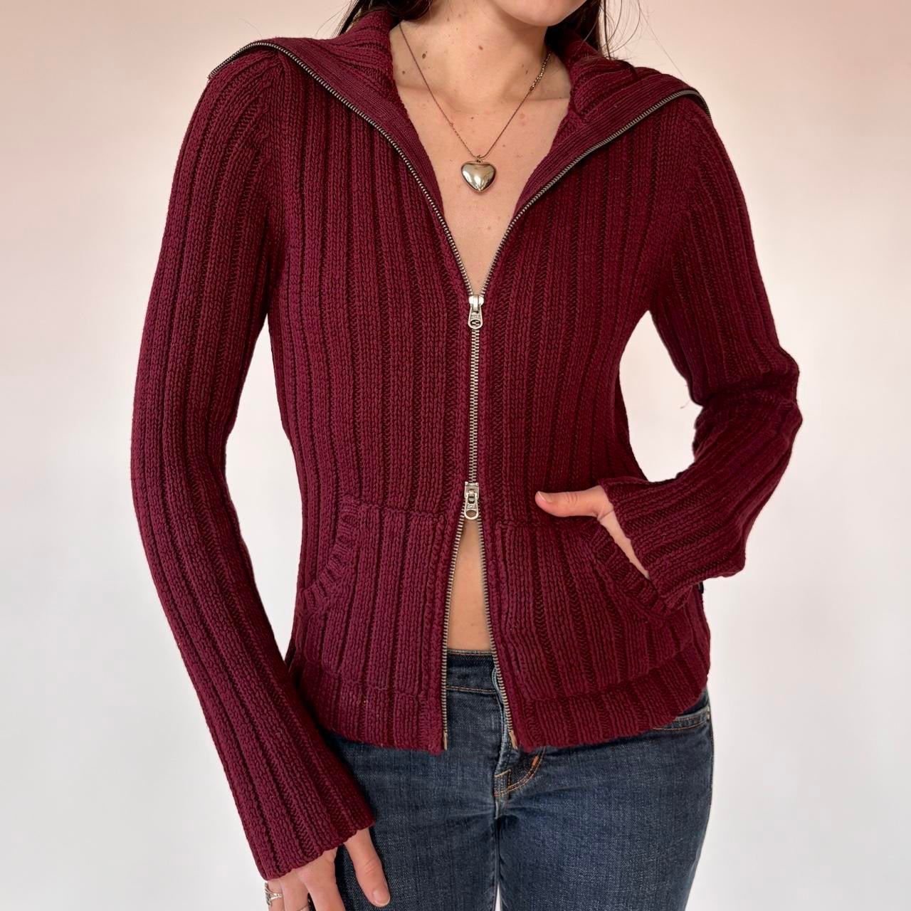 Abercrombie & Fitch Burgundy Double Zip Sweater