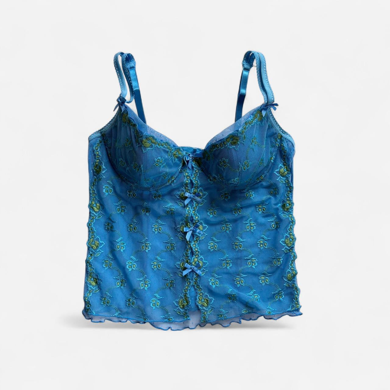 Sophie wears a modern size XS (5’6” tall / 25” waist / 35” hips / 32B bust). This top fits her with room.
