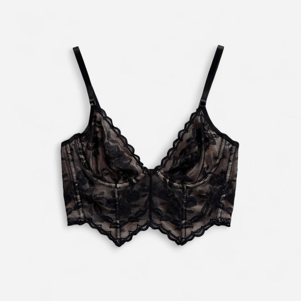 Sophie wears a modern size XS (5’6” tall / 25” waist / 35” hips / 32B bust). This bustier fits her well.
