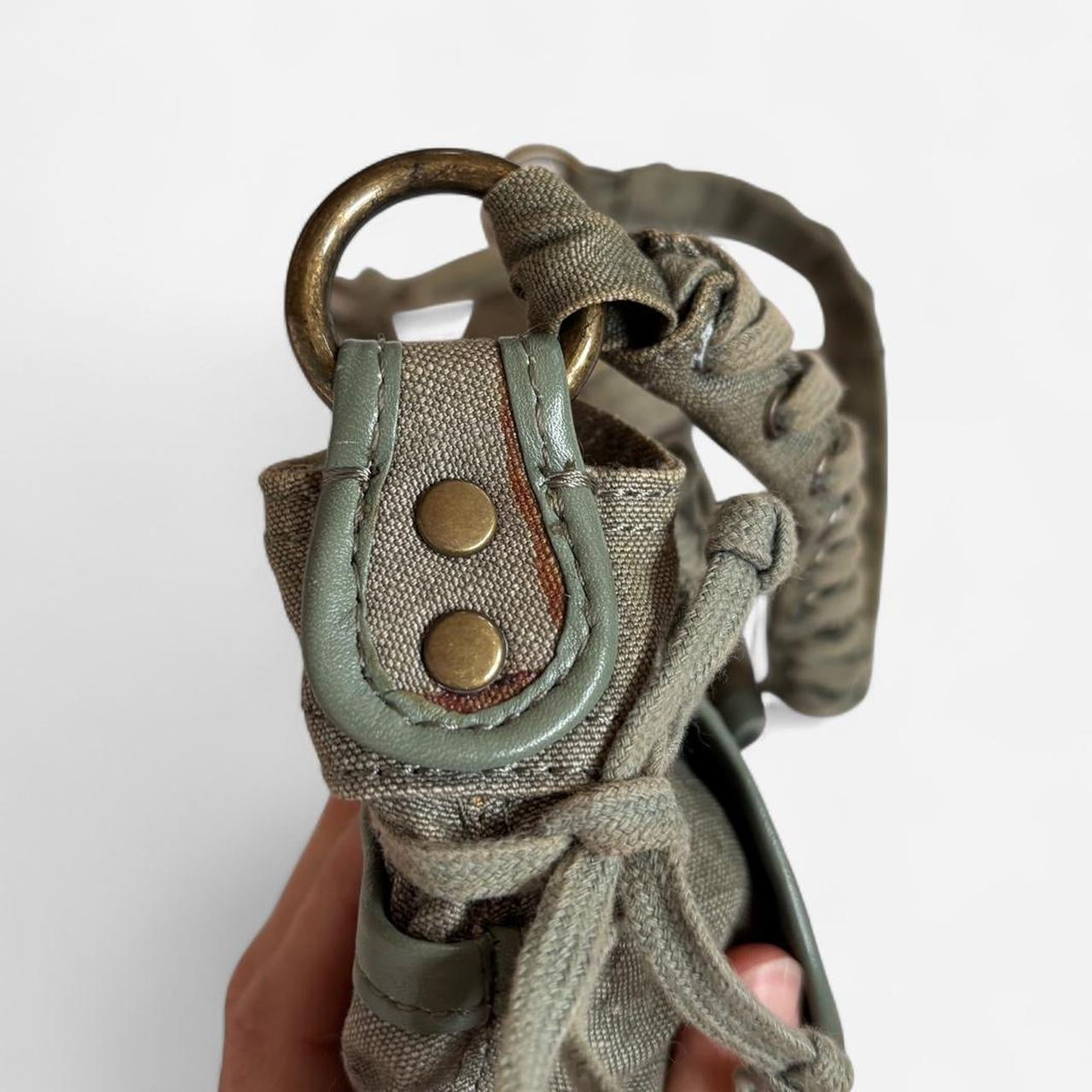 Body measures 11” x 6”. Vintage from the 2000s. Olive green. Zipper closure. Fair condition with flaws - see photos.