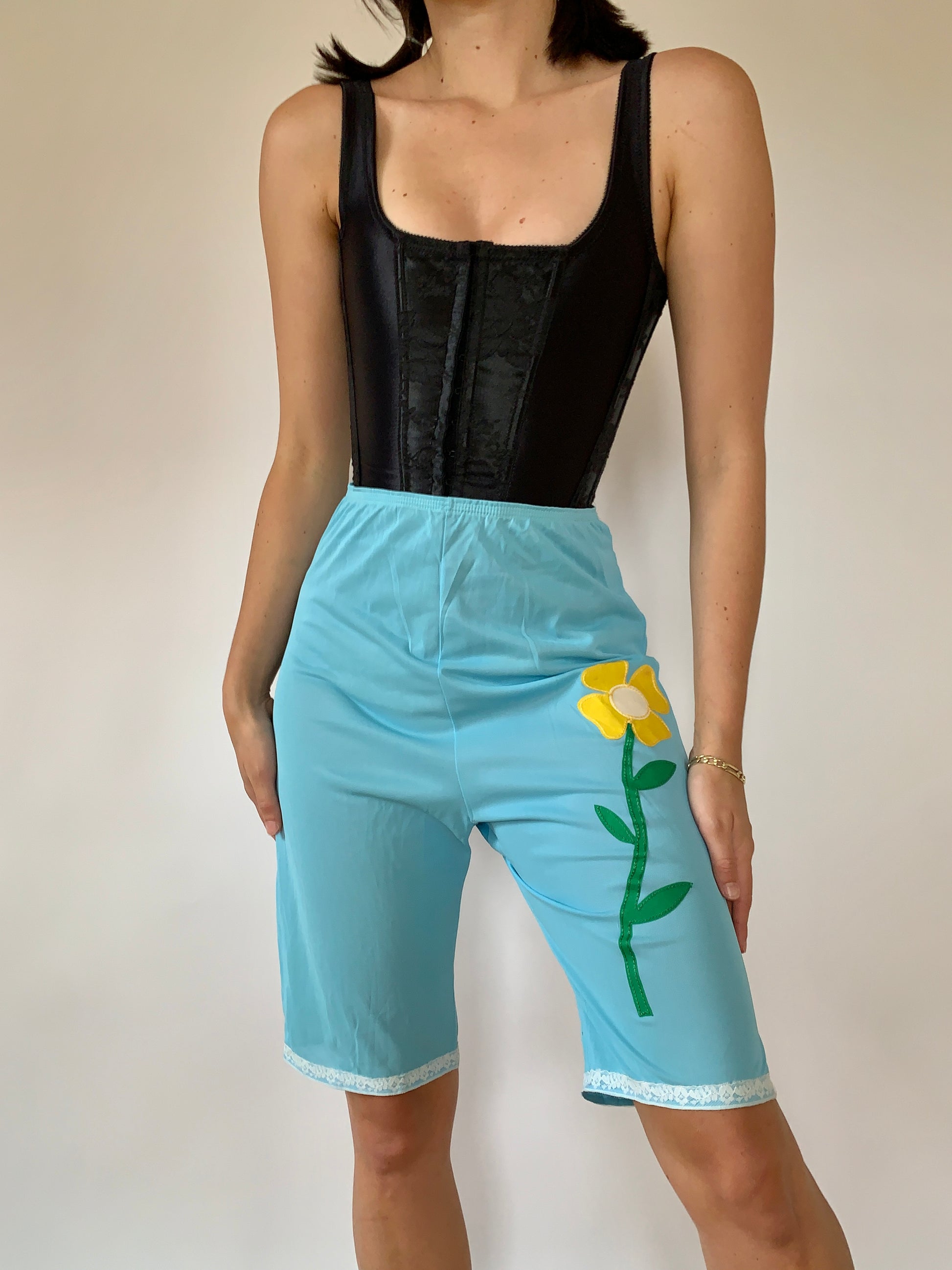 - Tagged size large but please refer to the measurements of the garment laying flat - waist: 22-28” (stretch) inseam: 10”