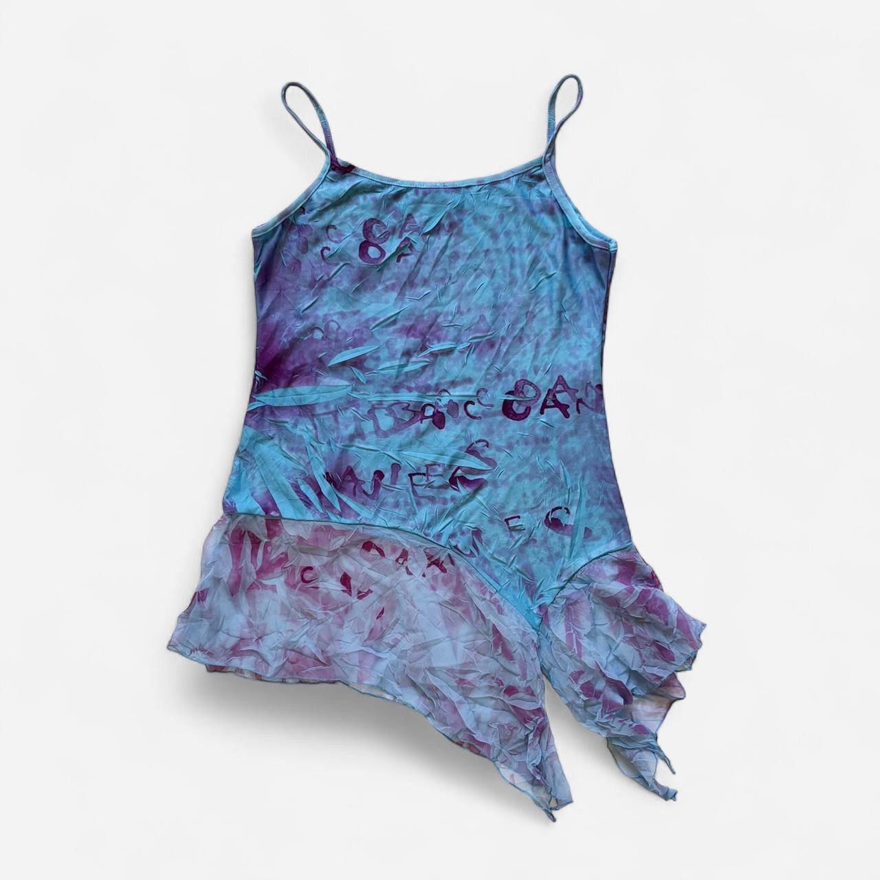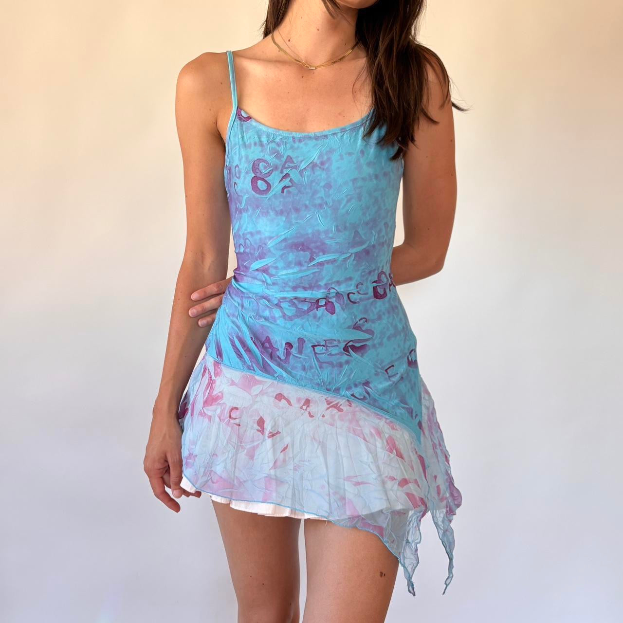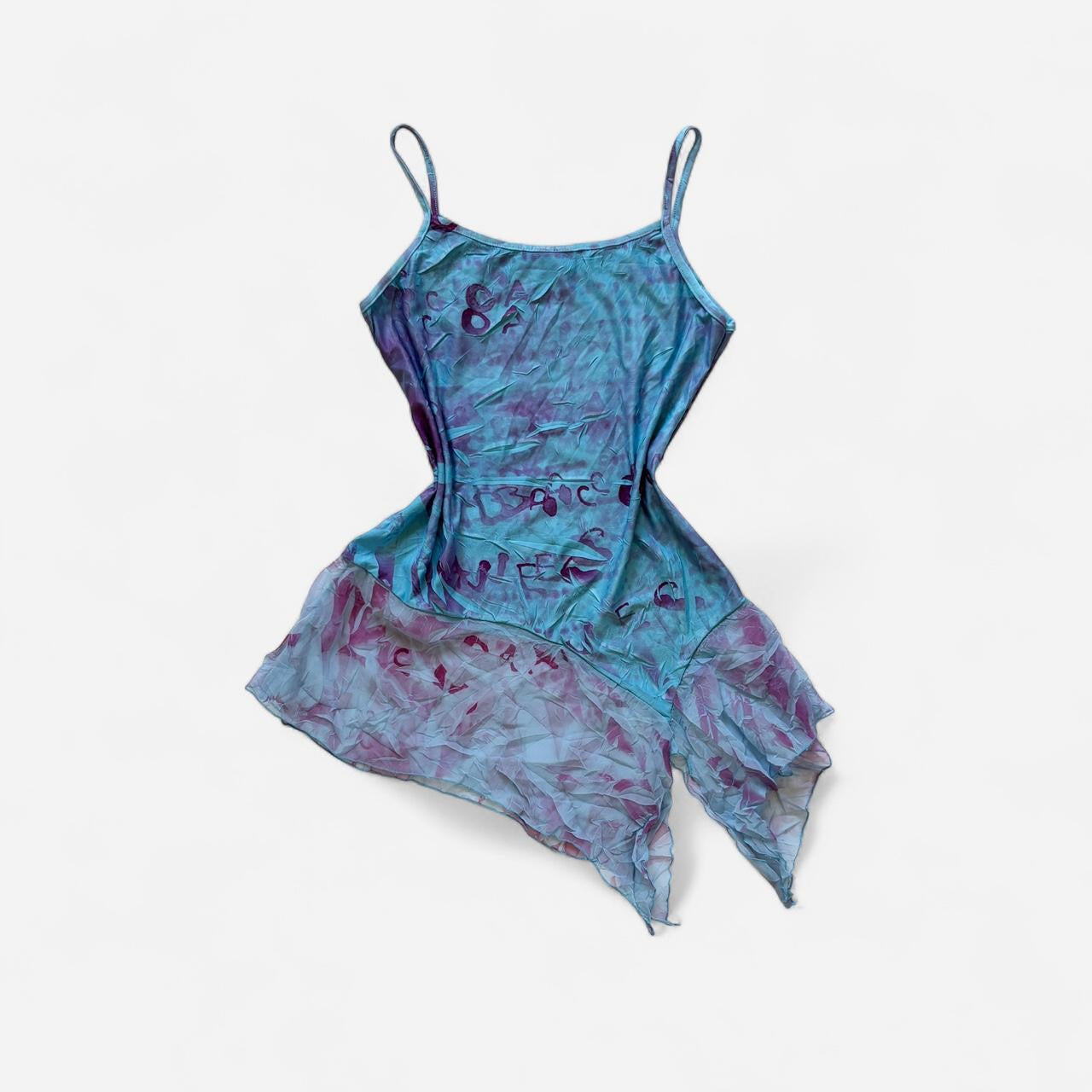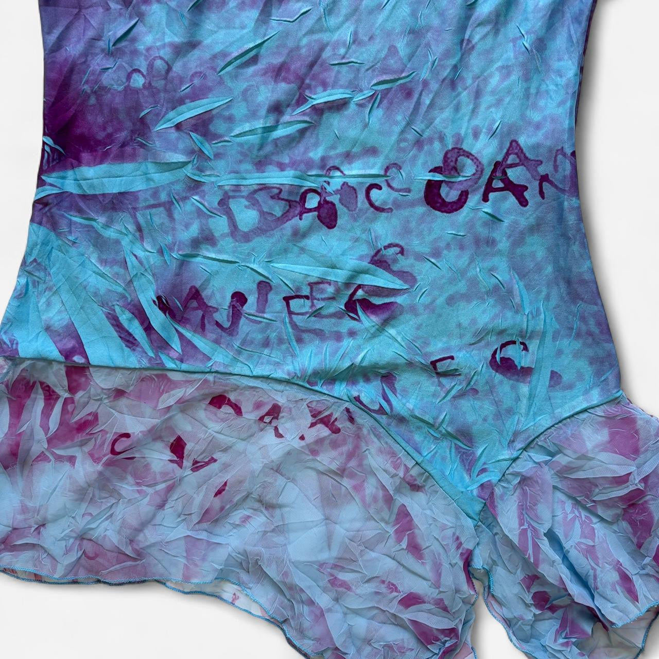 Size medium. Bust measures 33” and stretches up to 38”. Waist measures 30” and stretches up to 34”. Length is 30”. Vintage from the 2000s. Brand is Grifflin, made in France. Textured & stretchy polyester/spandex blend. Excellent condition.