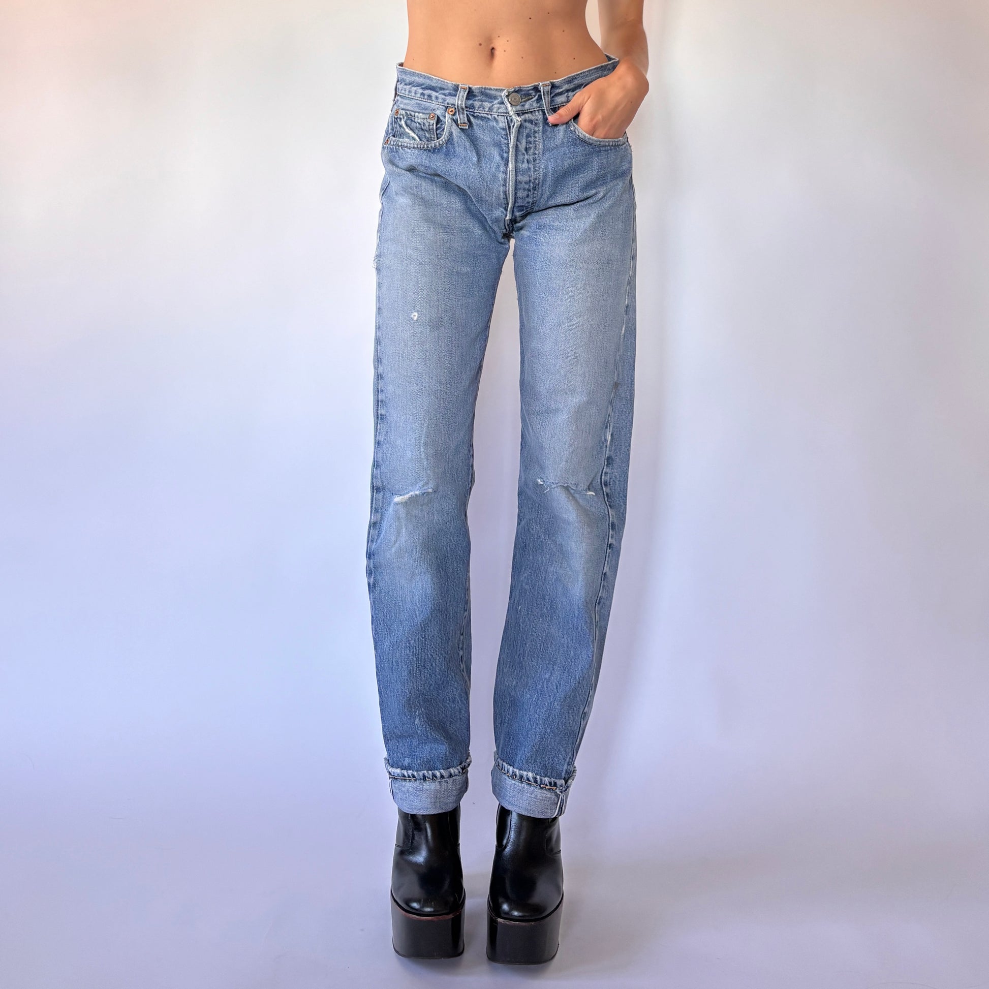 Sophie wears a modern size XS (5’6” tall / 25” waist / 35” hips / 32B bust). These jeans fit her comfortably.