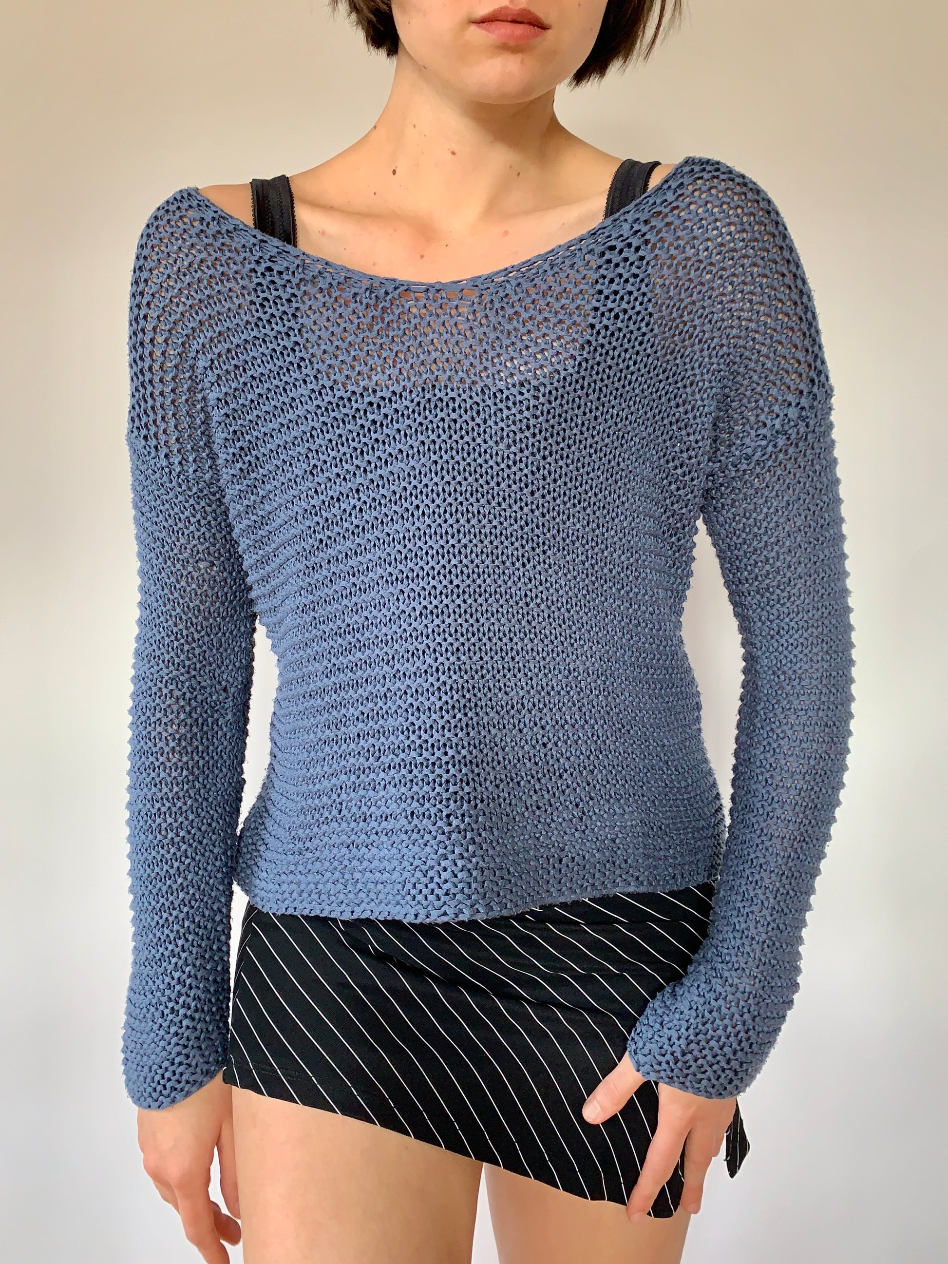 Crochet sweater in dusty blue
