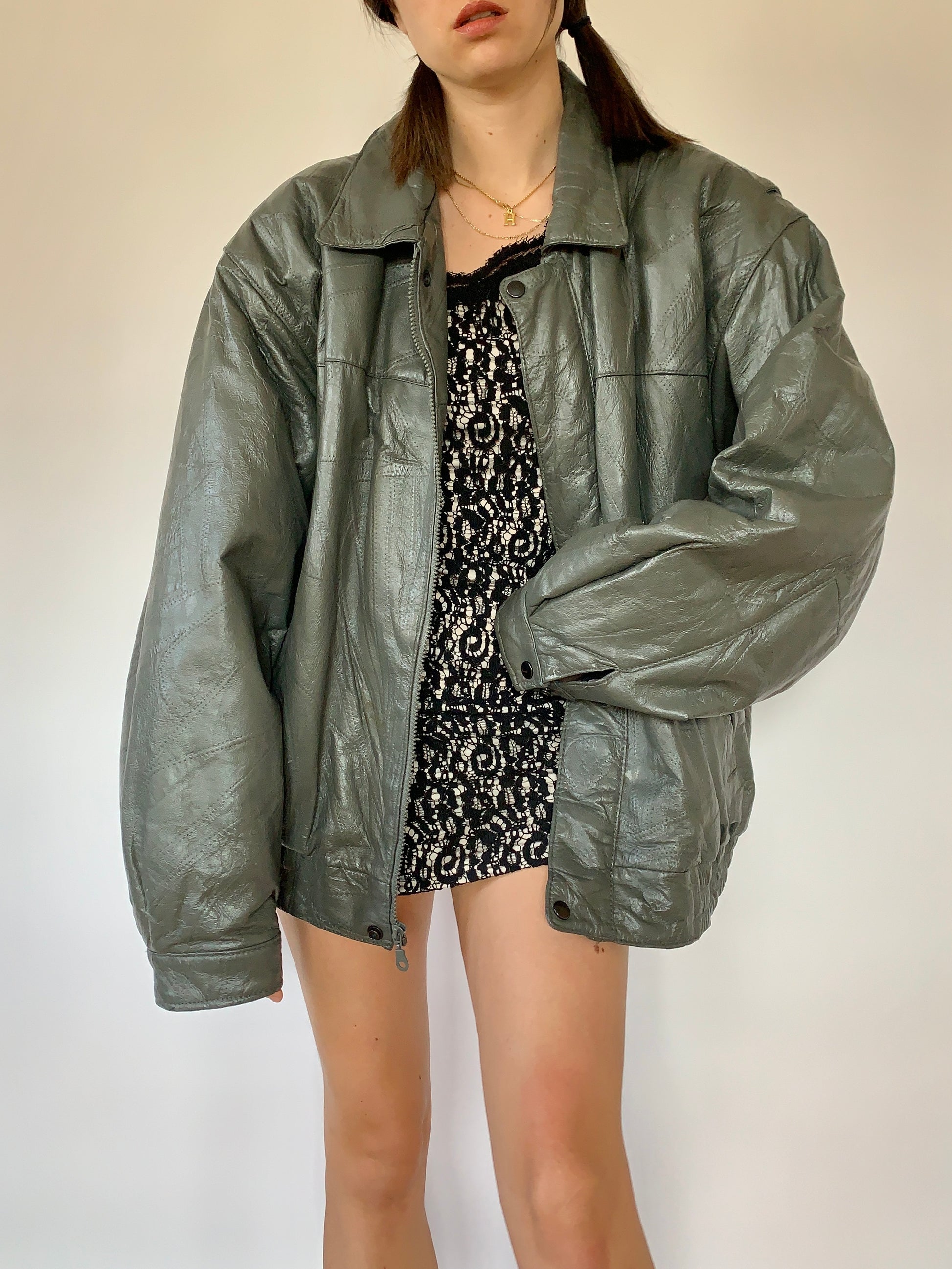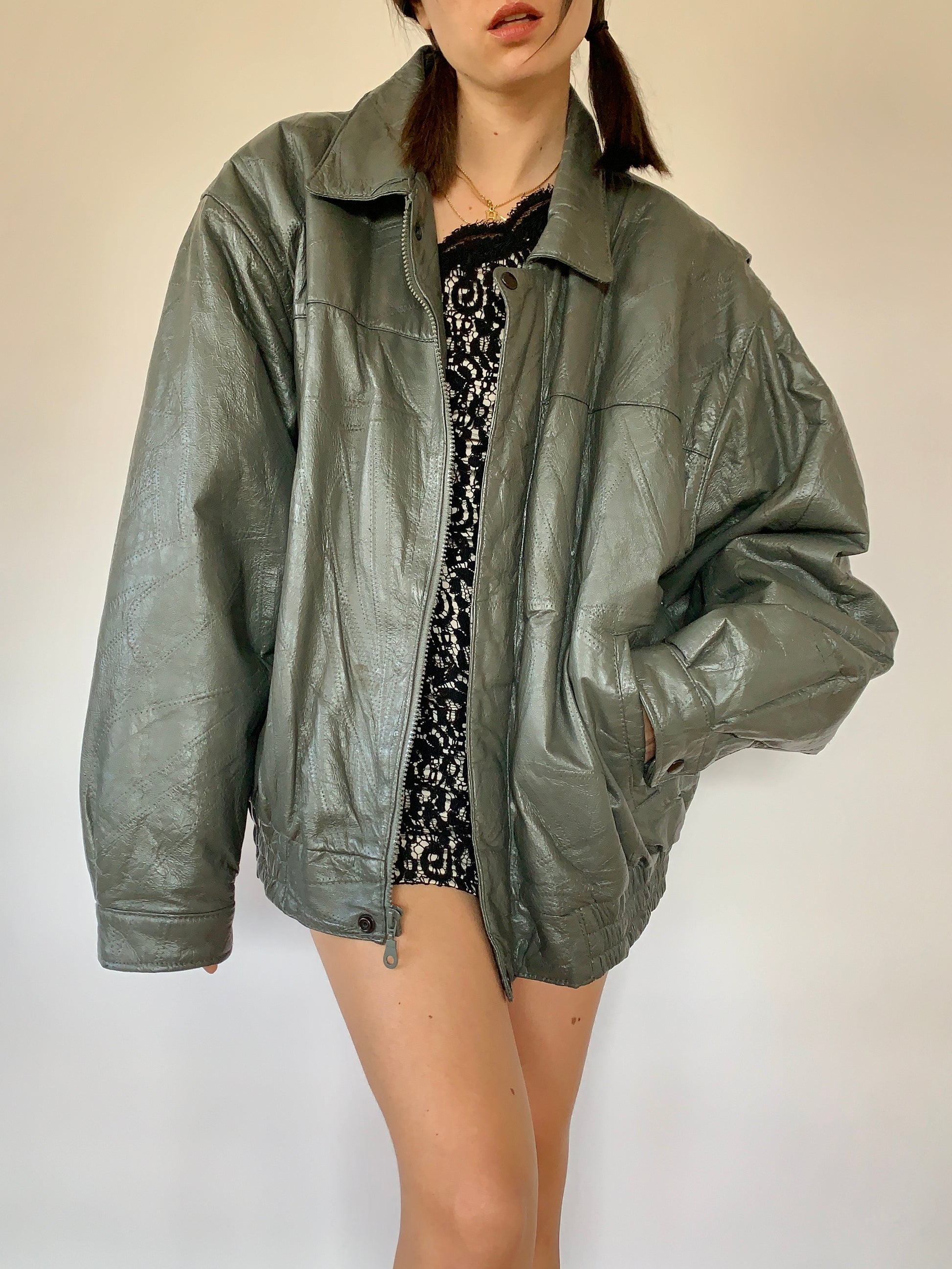 Vintage genuine leather jacket in slate