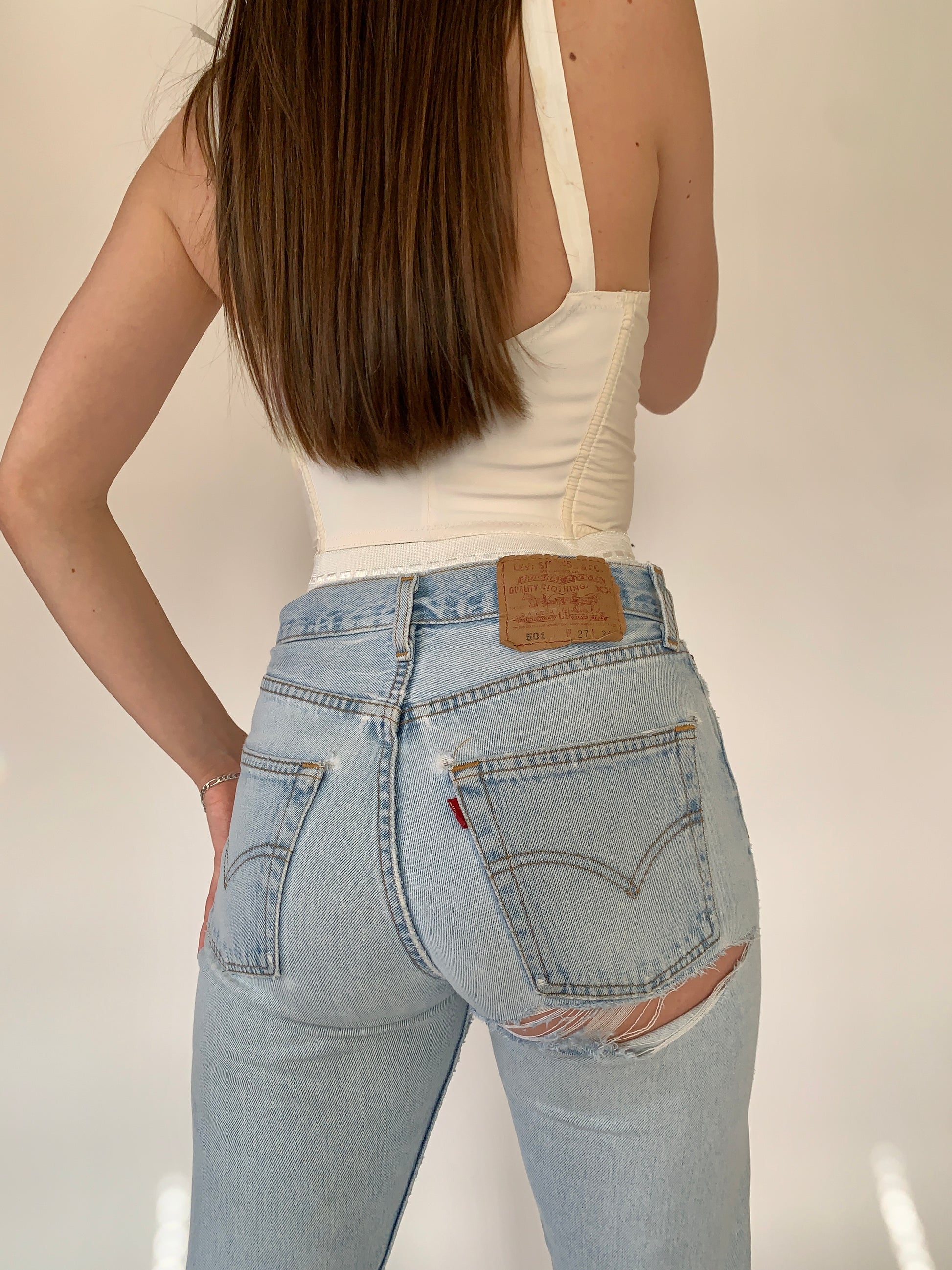 Vintage 1950s bra, by Penny’s Adenna. Material is a nylon cotton blend. Made in USA. Good condition overall despite small discoloration due to age. Tagged size 34D. Fits more like XXS, 20-24” waist. Shown on size XS/32B.