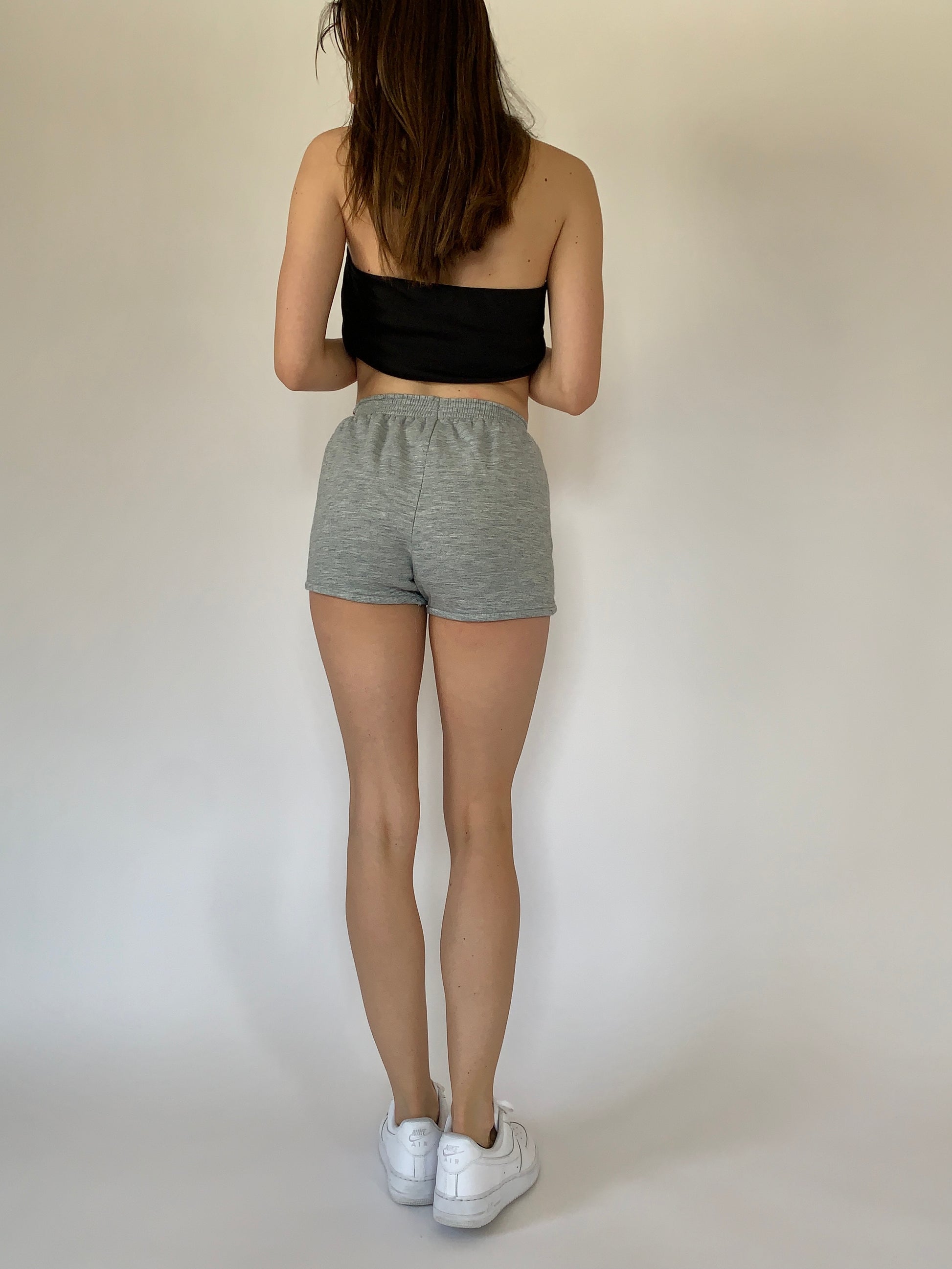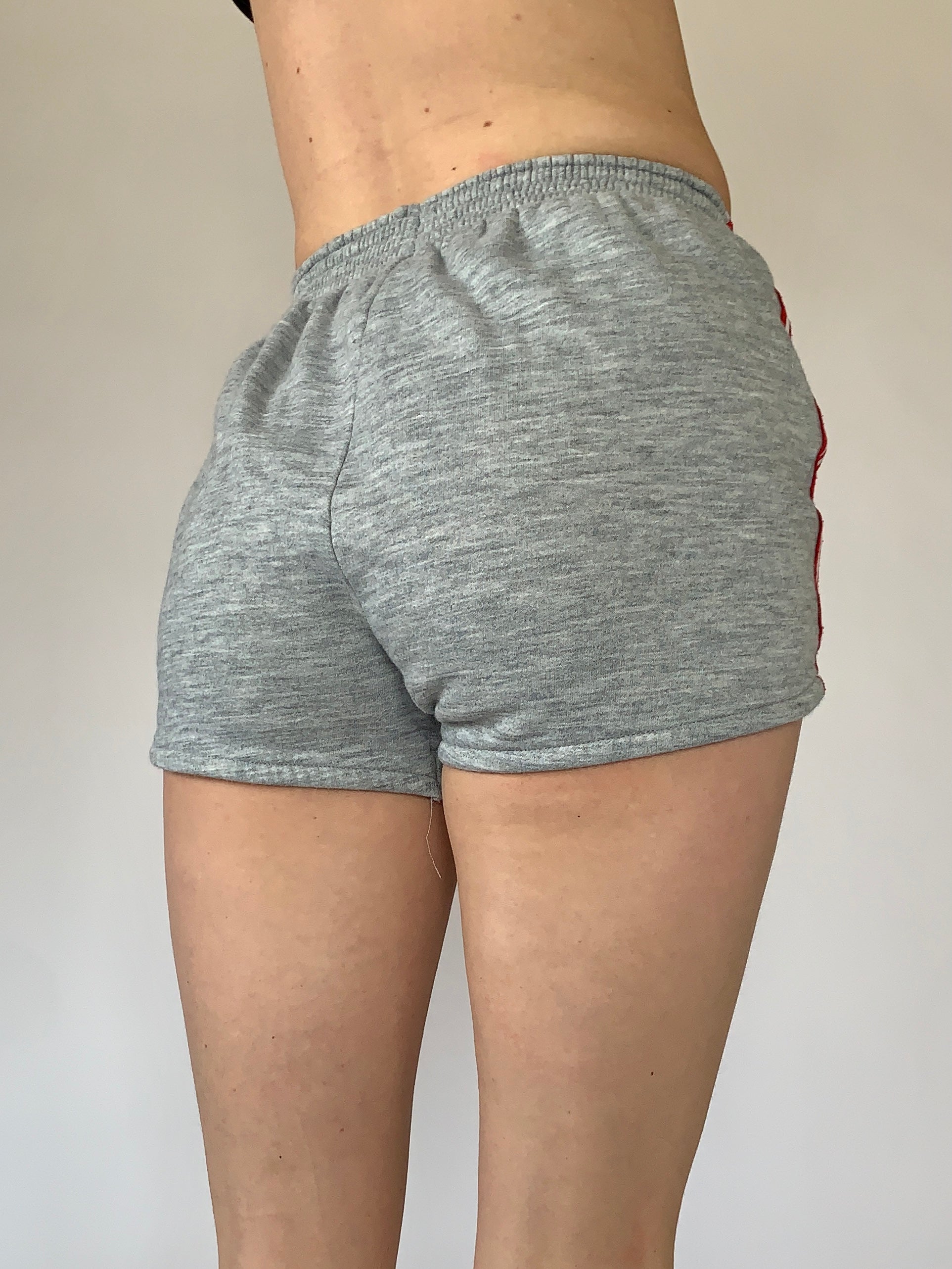 Vintage 1970s sweat shorts. In gray, red and white. Material is a soft, sweatshirt-like acrylic. In excellent vintage condition. Tagged S, shown on size XS.