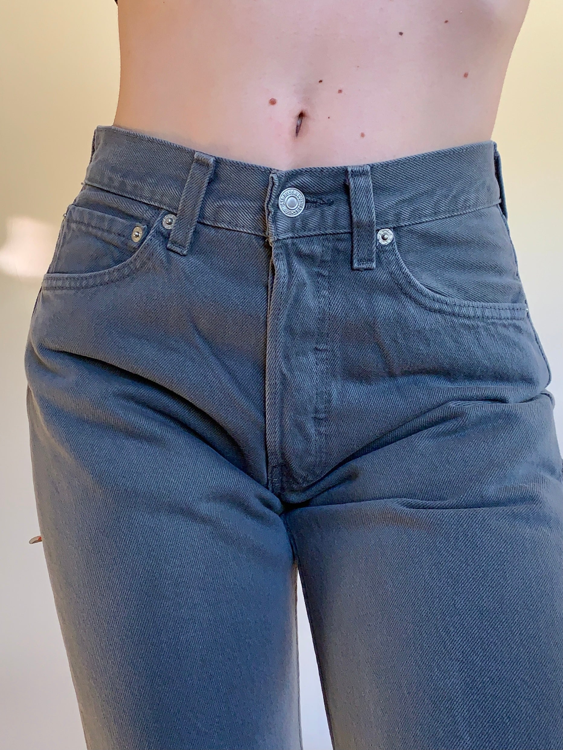 Vintage 1990s deadstock Levi’s 501 For Women jeans. High waisted with a four button fly and straight leg. In a gray wash. 100% cotton denim. Made in USA. In deadstock, like new vintage condition with original tags attached - discoloration rectangle from size sticker is present. Tagged W27 L32, but best fits 25-26” waist.