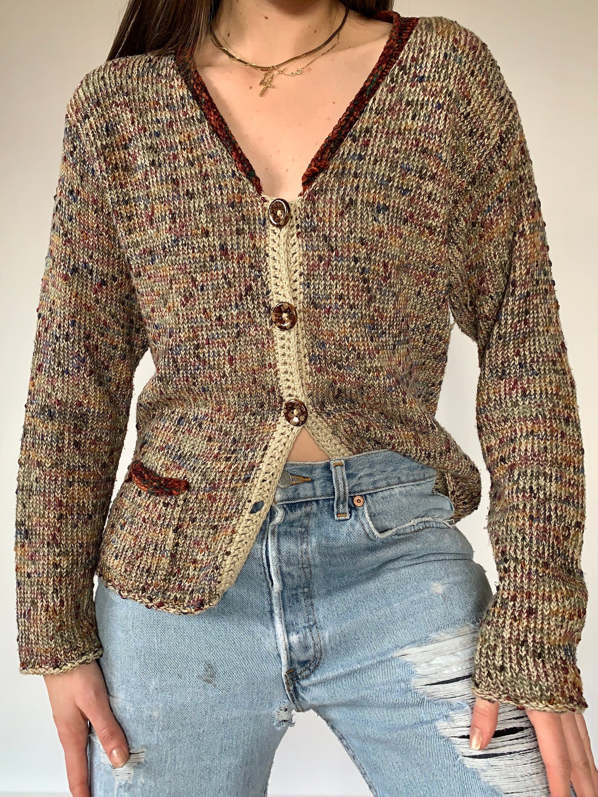 Vintage 1990s knit, made by Ani Barrie. Material is a cotton rayon blend. Made in USA. Excellent condition. Tagged size S. Shown on size XS.