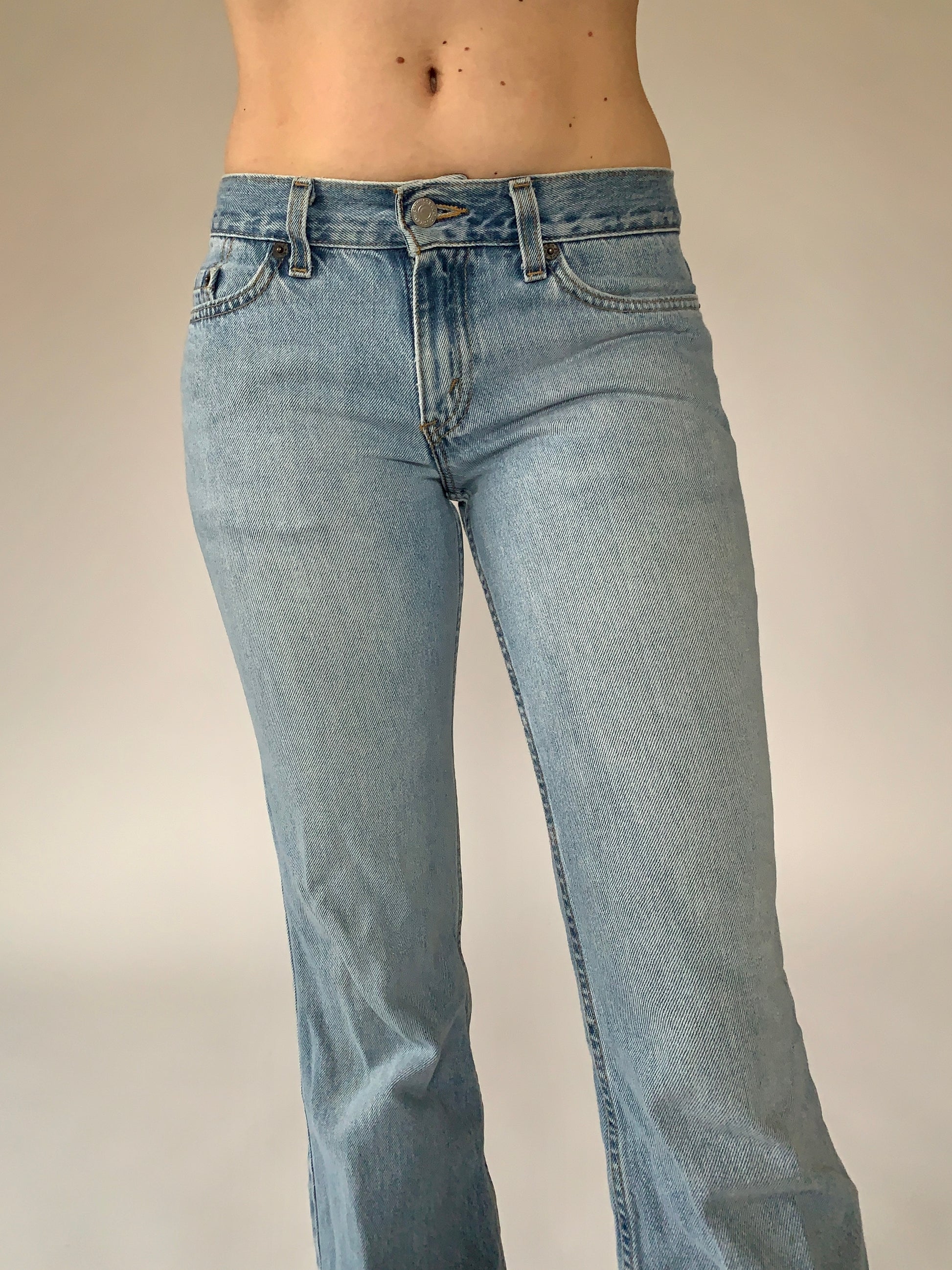 Vintage 1990s Levi’s 518 jeans. Low rise with a boot cut. In a light wash. Excellent condition. Best fits 26-27” waist at low rise.