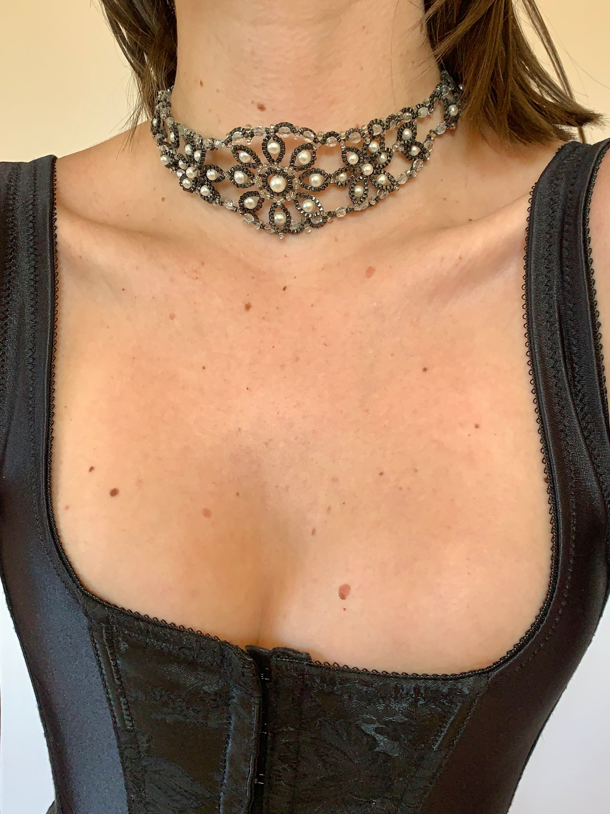 Vintage pearl beaded choker. Costume jewelry. Excellent condition. Measures 12 inches long when opened.