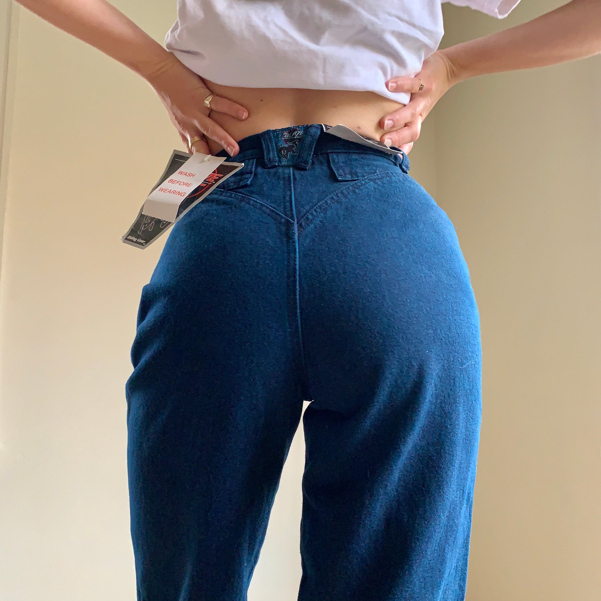 Vintage western deadstock Blaze jeans. High waisted with a slim fit and straight leg. In a vibrant blue wash. 100% cotton denim. In like new, deadstock vintage condition with original tags attached. Tagged size 0, but best fits 22-23” waist.