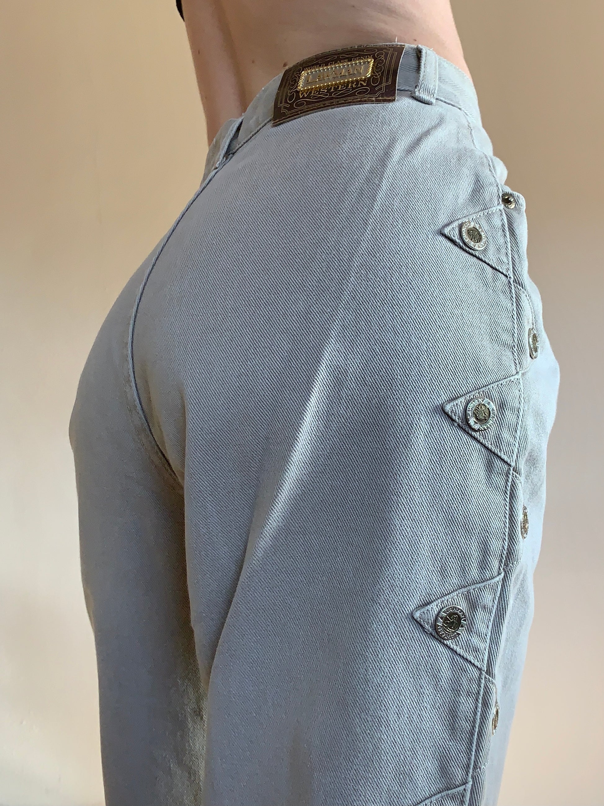 Vintage western Lawman jeans. High waisted with a zip fly and straight leg. In a neutral tan wash. 100% cotton denim. In excellent vintage condition. Tagged size 9, but best fits 27-28” waist.