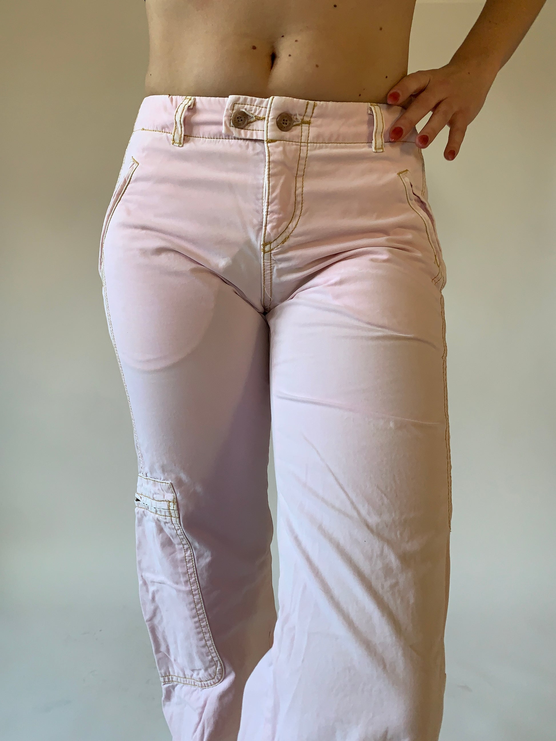 Y2K baby pink cargo pants. Low rise with flare. 100% cotton. Great condition. Best fits 26” waist at low rise.