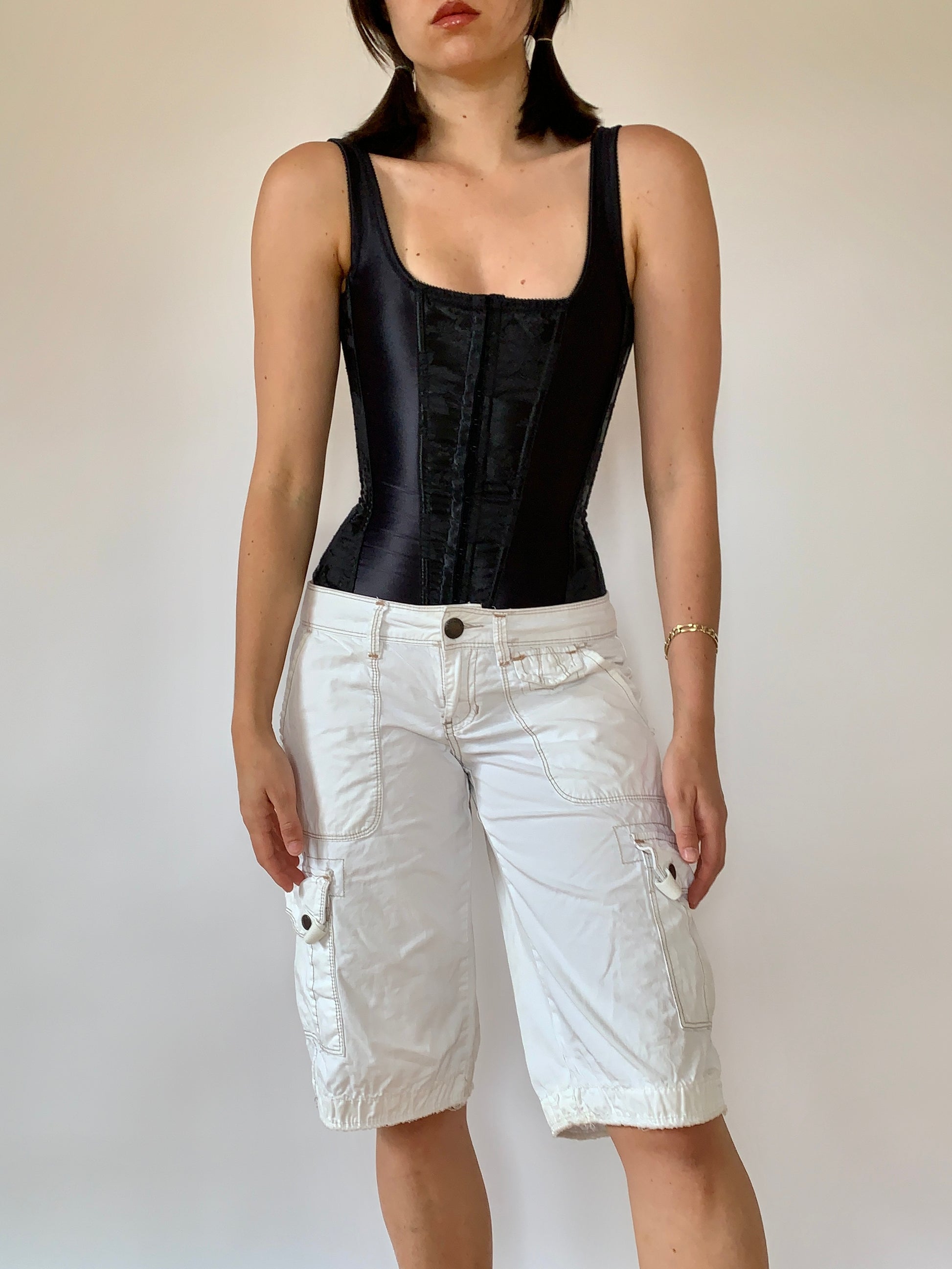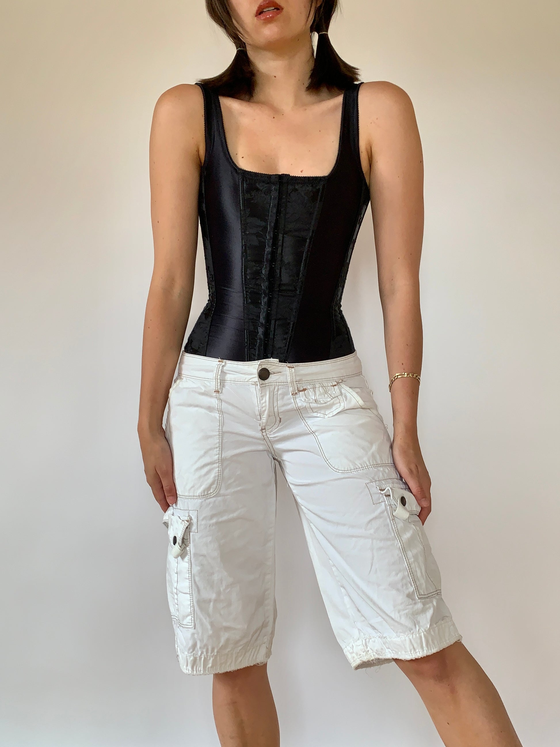 - Tagged size 5 but please refer to the measurements of the garment laying flat - waist: 28” inseam: 14” hips: 38” rise: 7.5”