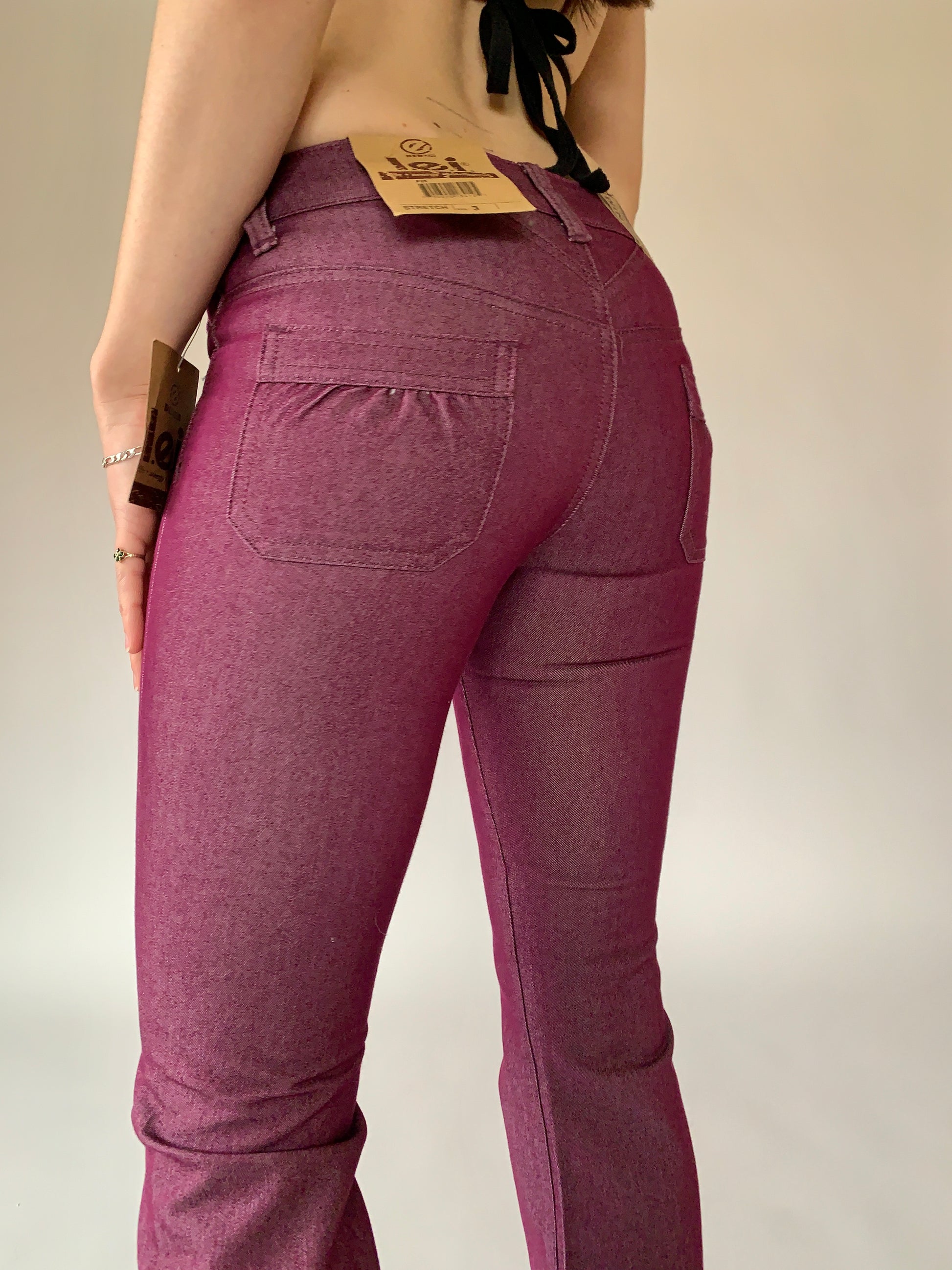Y2K deadstock L.E.I. pants. Low rise with flare. In a maroon wash. Material is a cotton spandex blend with stretch. In brand new condition with original tags attached. Tagged size 3, but best fits size XXS / 25” waist at low rise.