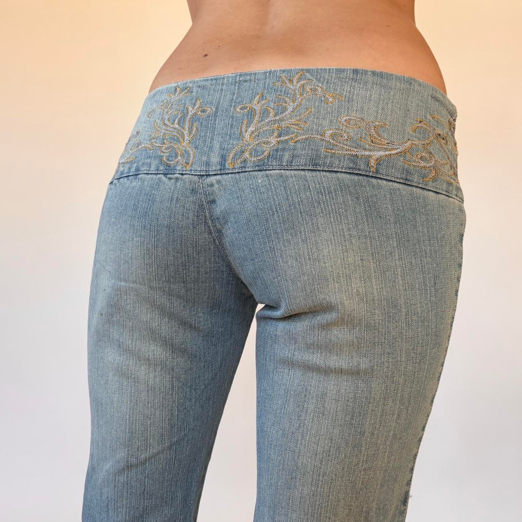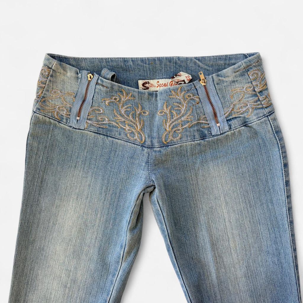 Y2K Embroidered Low Rise Jeans (XS)