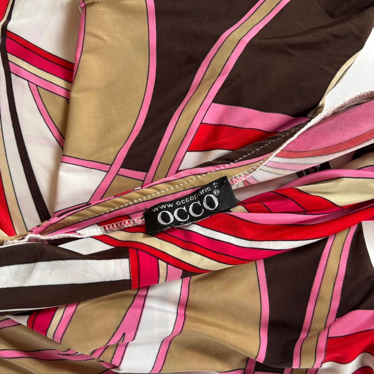 Size small. Bust measures 32” and stretches to 38”. Length is 20”. Vintage from the 2000s. Brand is Occo Paris. Slinky & stretchy. Style in a myriad of ways. Fabric is unlabeled. Excellent condition.