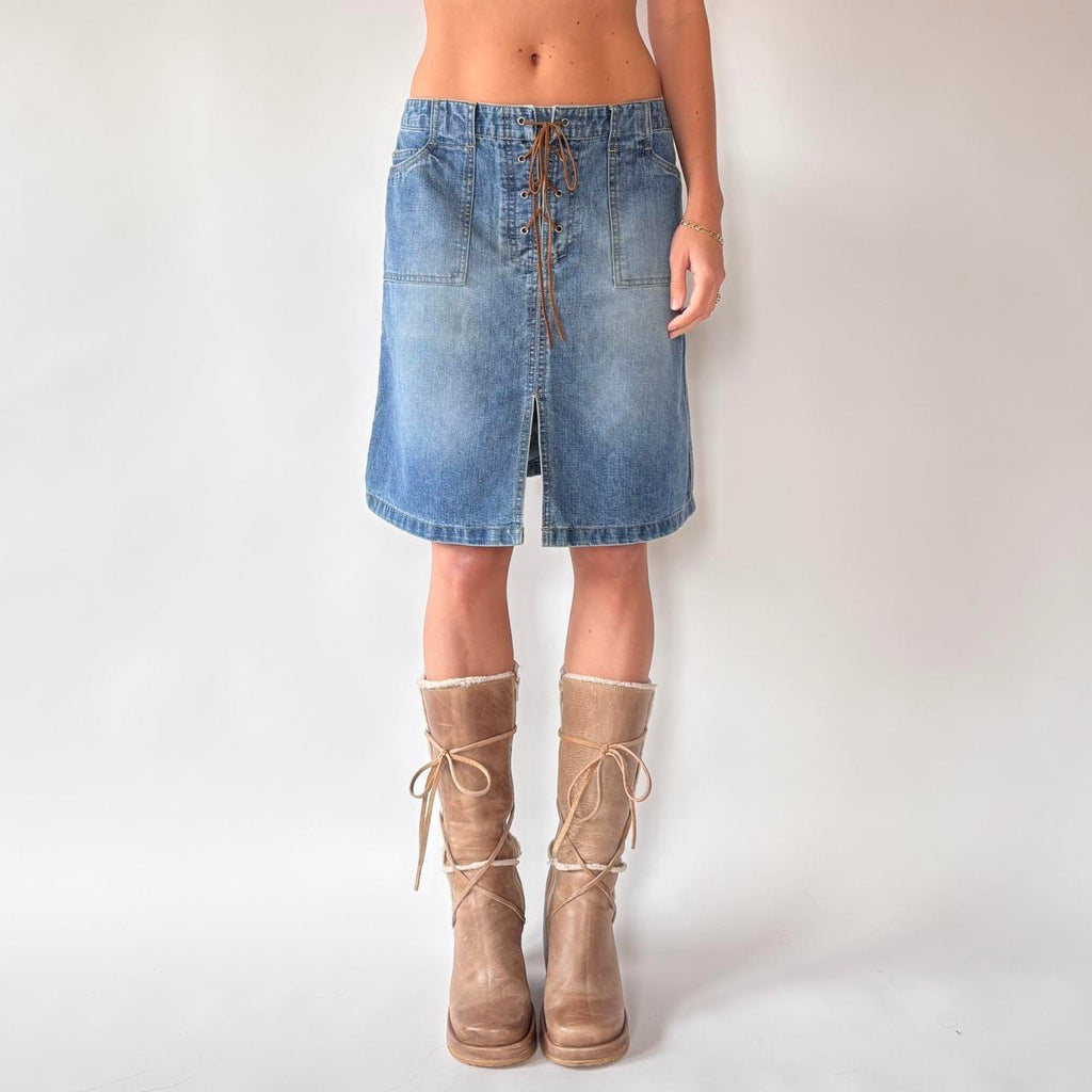Y2K Lace Up Denim Skirt (M)