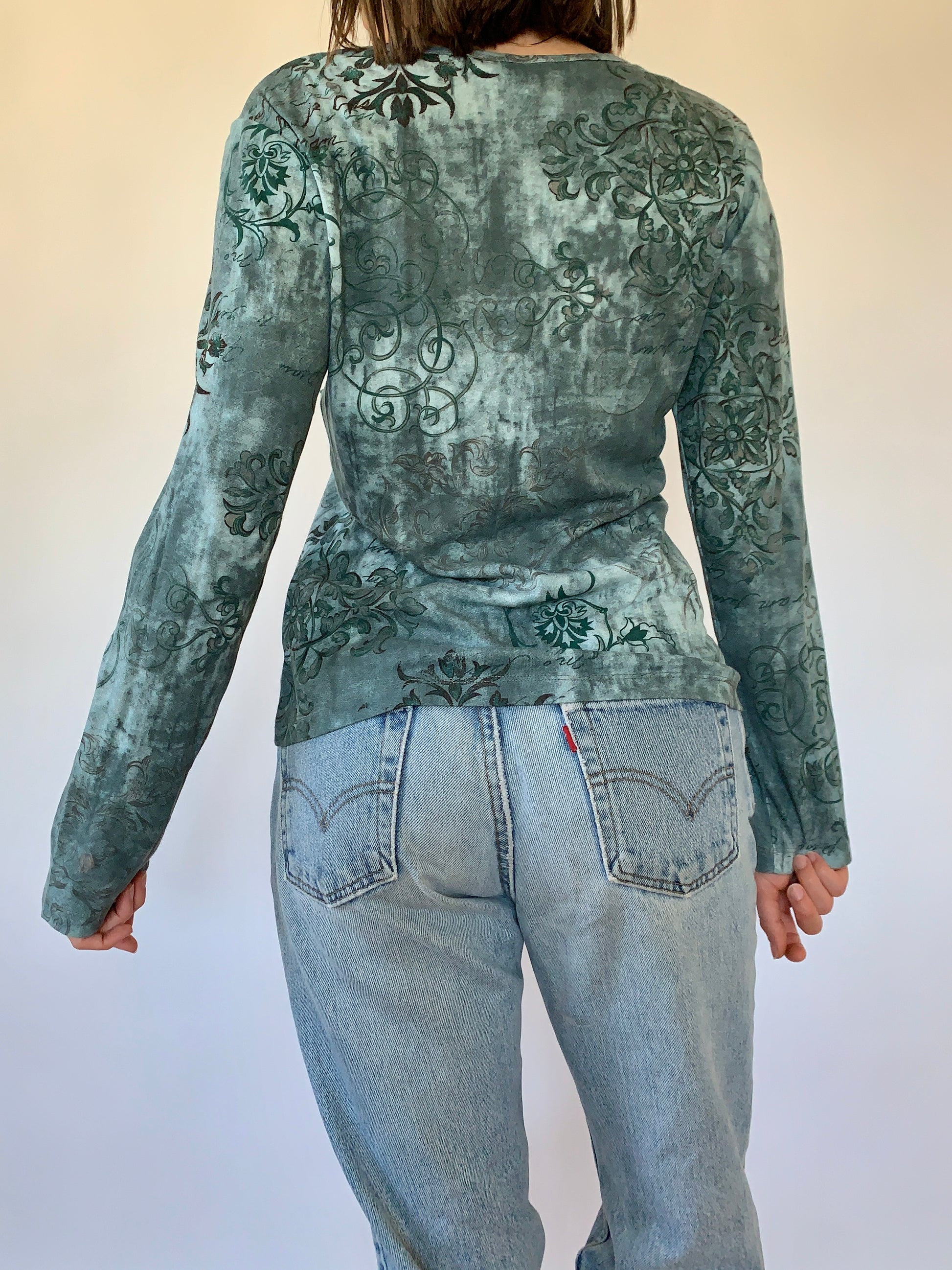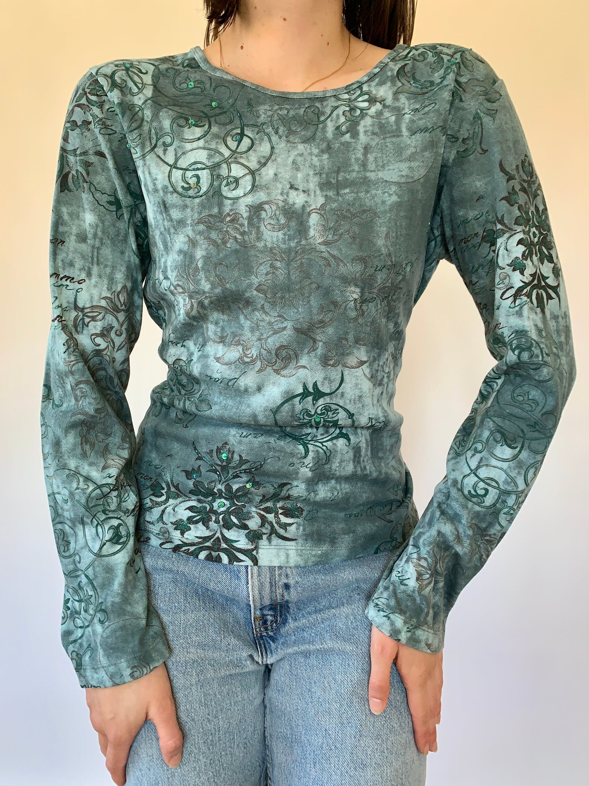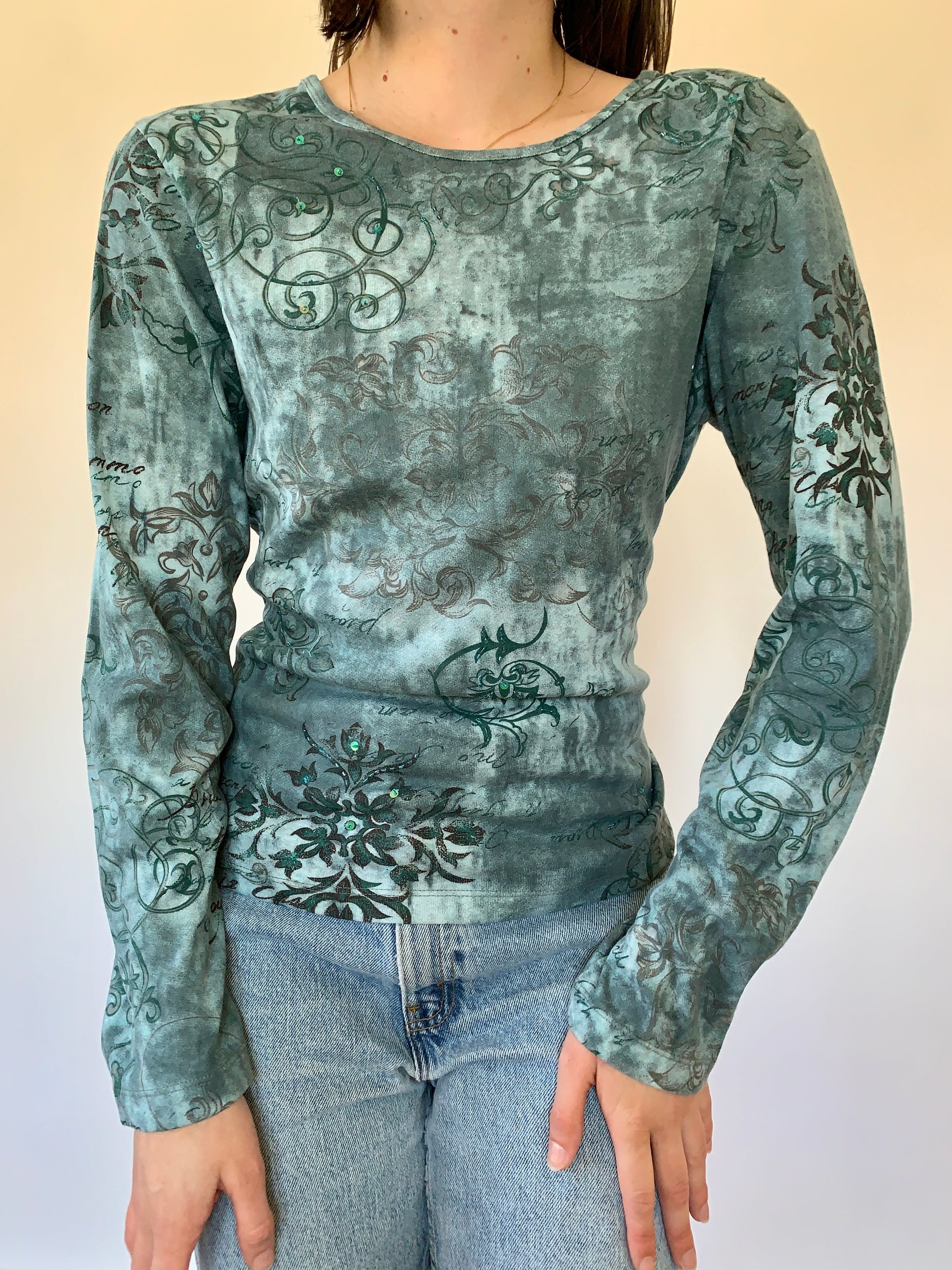 Y2K longsleeve tee. In blue with sequin detail. 100% cotton. Excellent condition. Tagged size medium.