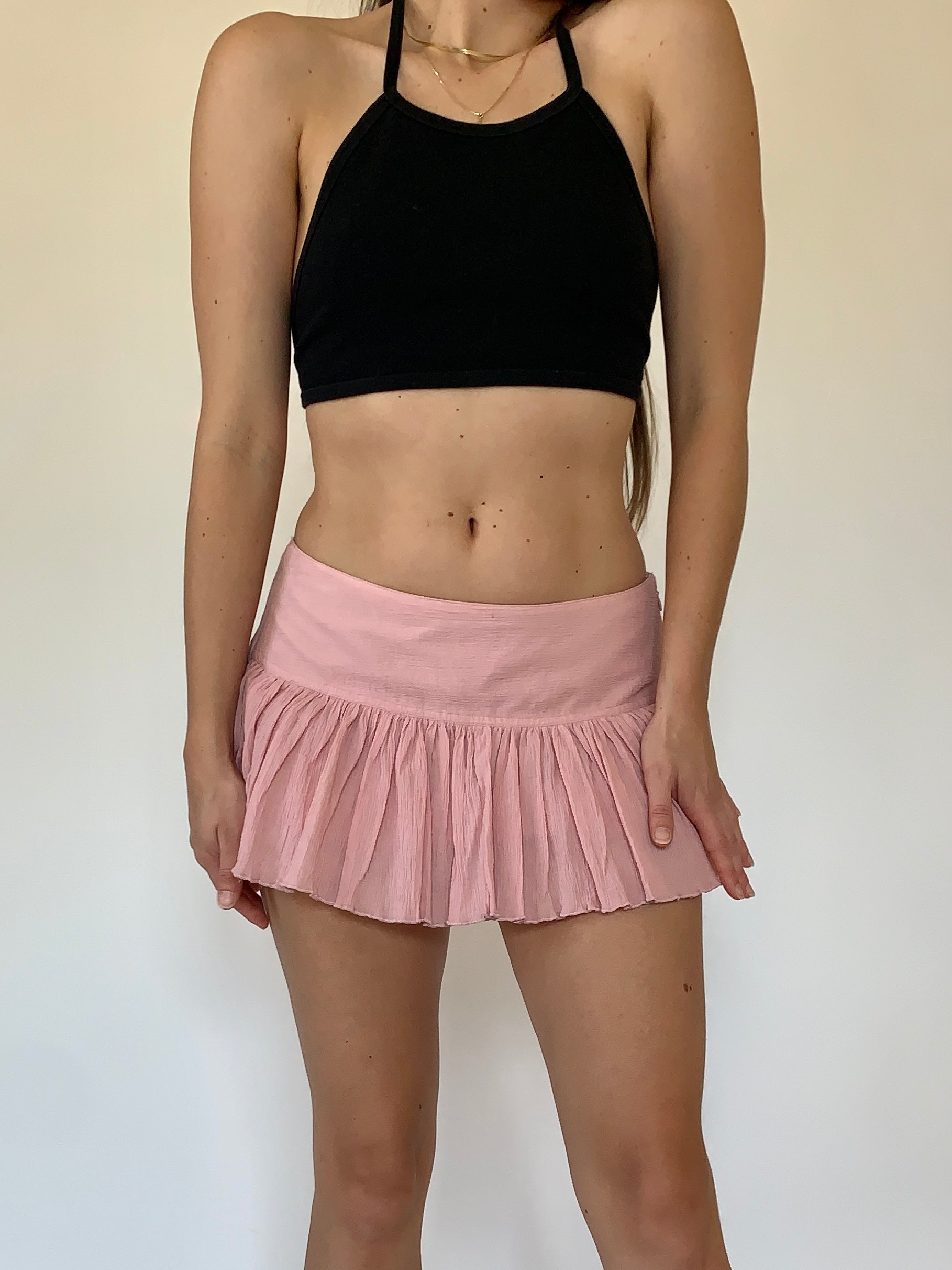 Y2K low rise mini skirt by Taunt. In baby pink. 100% cotton. Excellent condition. Tagged size S, shown on size S.