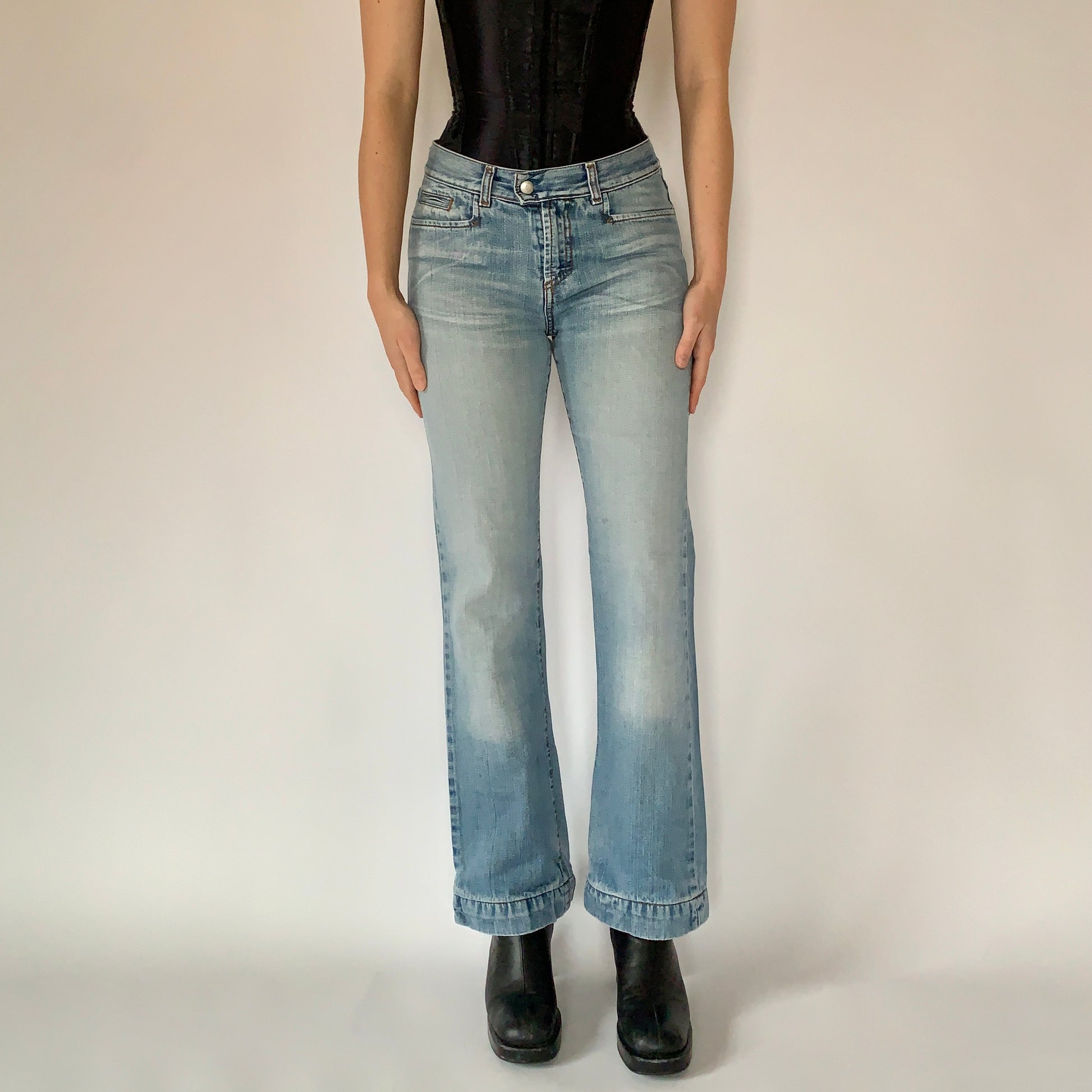 - Please refer to the measurements of the garment laying flat - waist (mid rise): 27” rise: 9.5” hips: 36” inseam: 29”