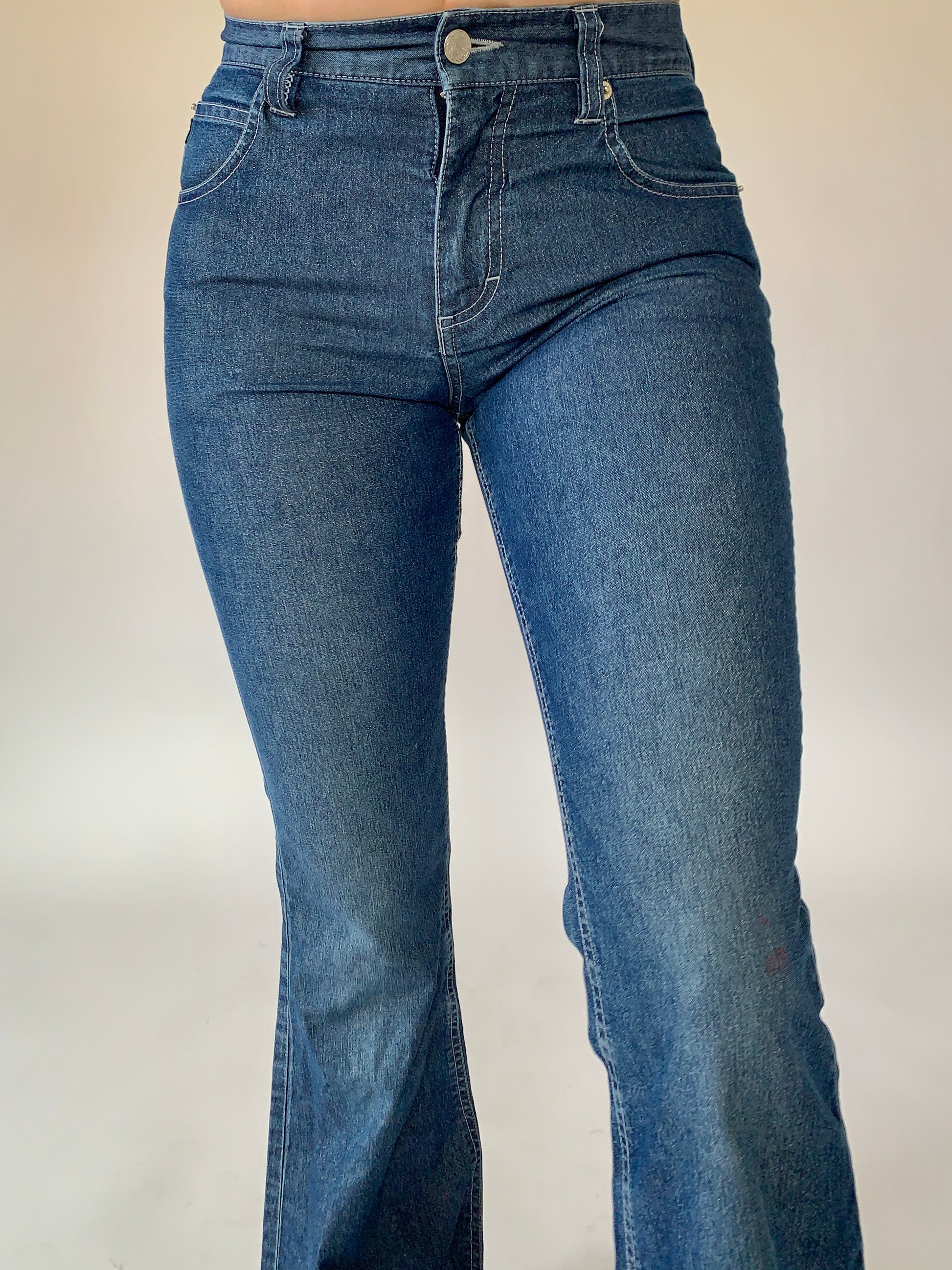 Y2K Mudd Jeans. Mid rise with flare. In a dark glittery wash. Material is a cotton/poly/metallic/nylon/spandex blend. Good condition with small paint marks to inner thigh and knee. Tagged size 3, best fits 26” waist.