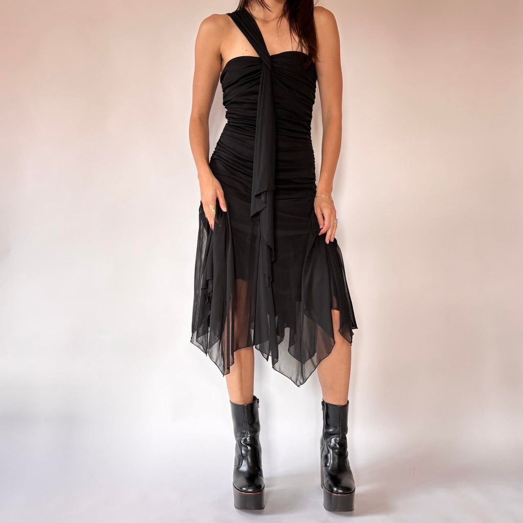 Sophie wears a modern size XS (5’6” tall / 25” waist / 35” hips / 32B bust). This dress fits her loosely in the bust & is shown pinned for the photos.
