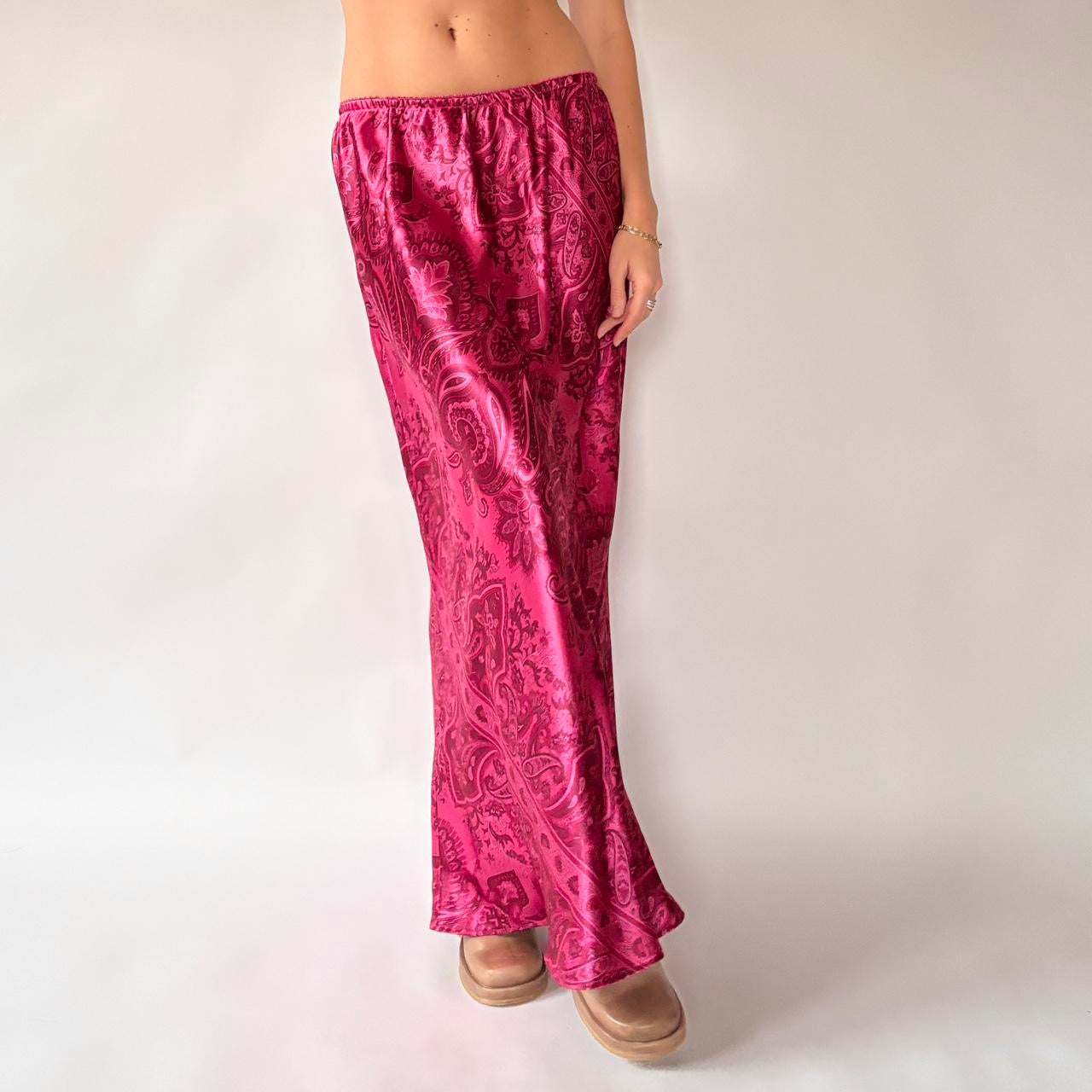 Y2K Pink Paisley Satin Maxi Skirt (S/M)