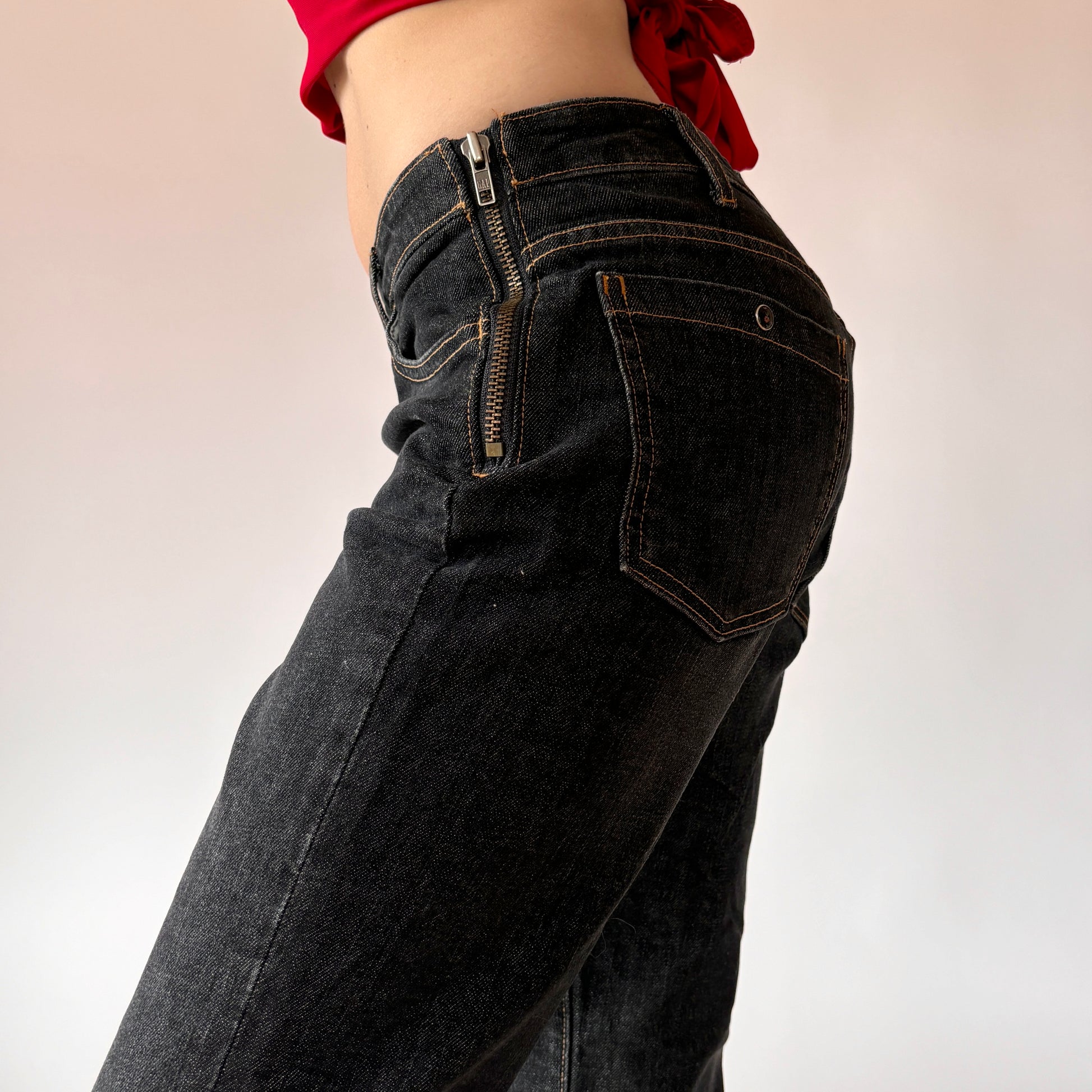 Y2K Side Zip Jeans - Black Wash (S)