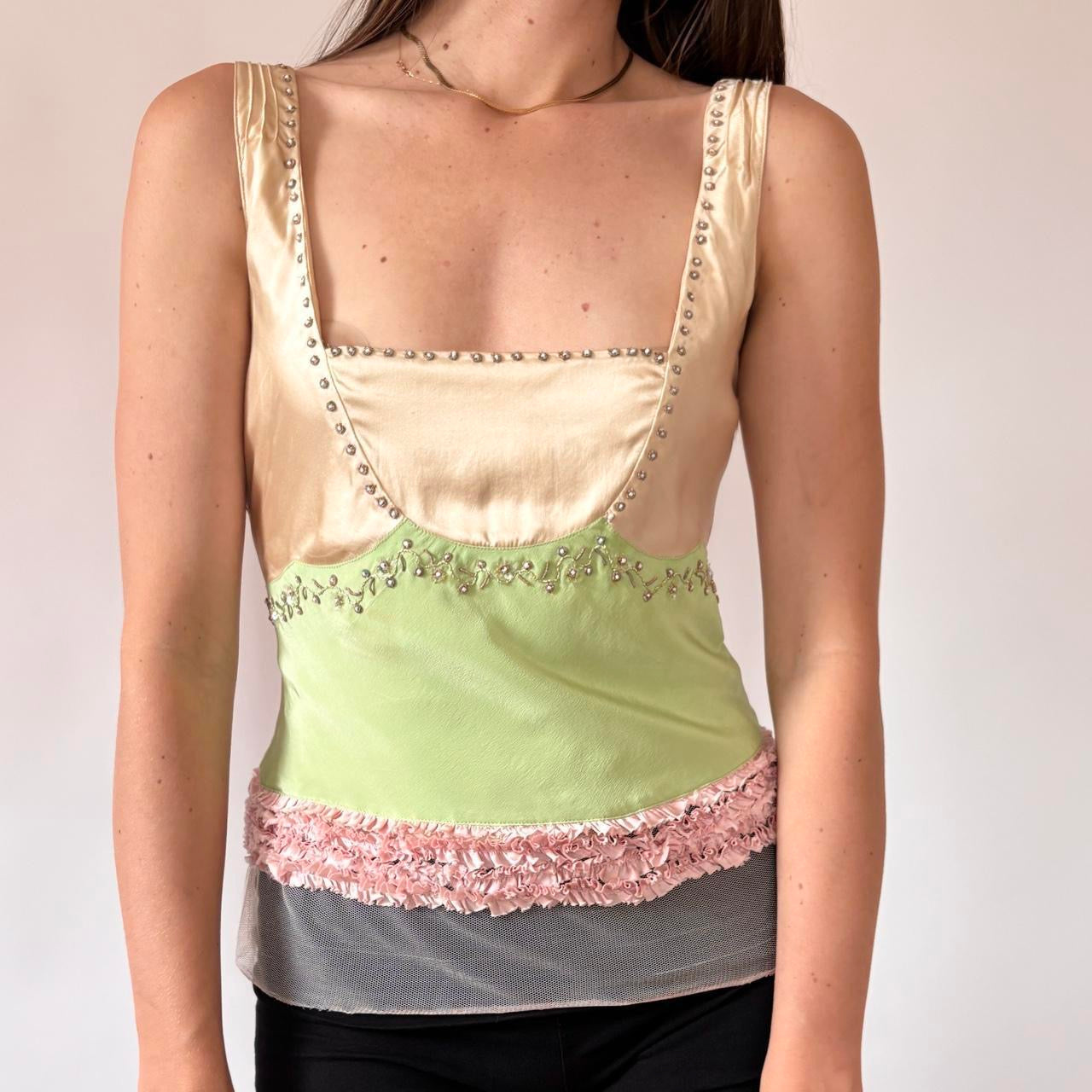 Her measurements: 25” high waist, 29” mid waist, 31” low waist, 35” hips, 32B bust.