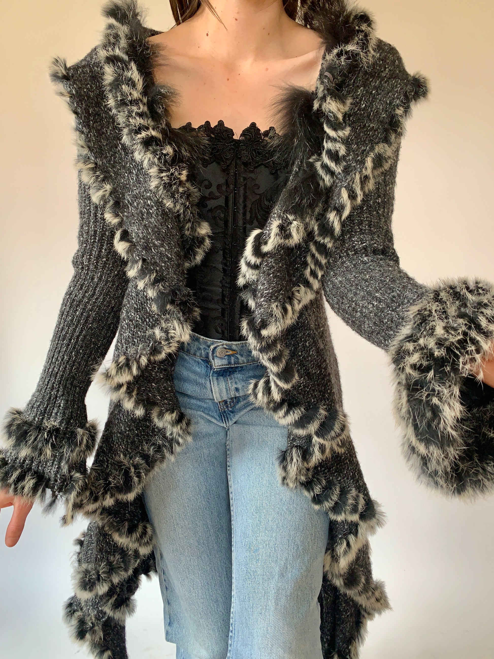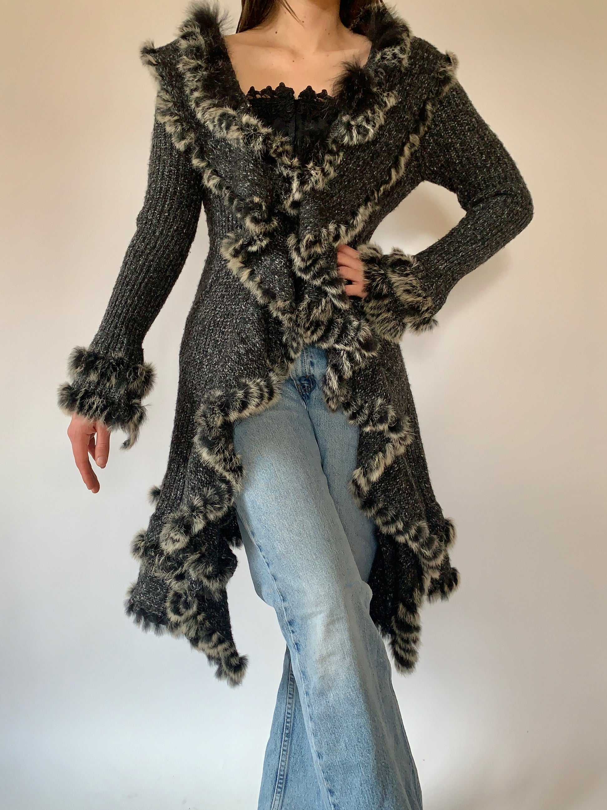 Y2K faux fur lined sweater, made by John Fashion. In gray. Material is a wool and acrylic blend. Good condition. Tagged size S.