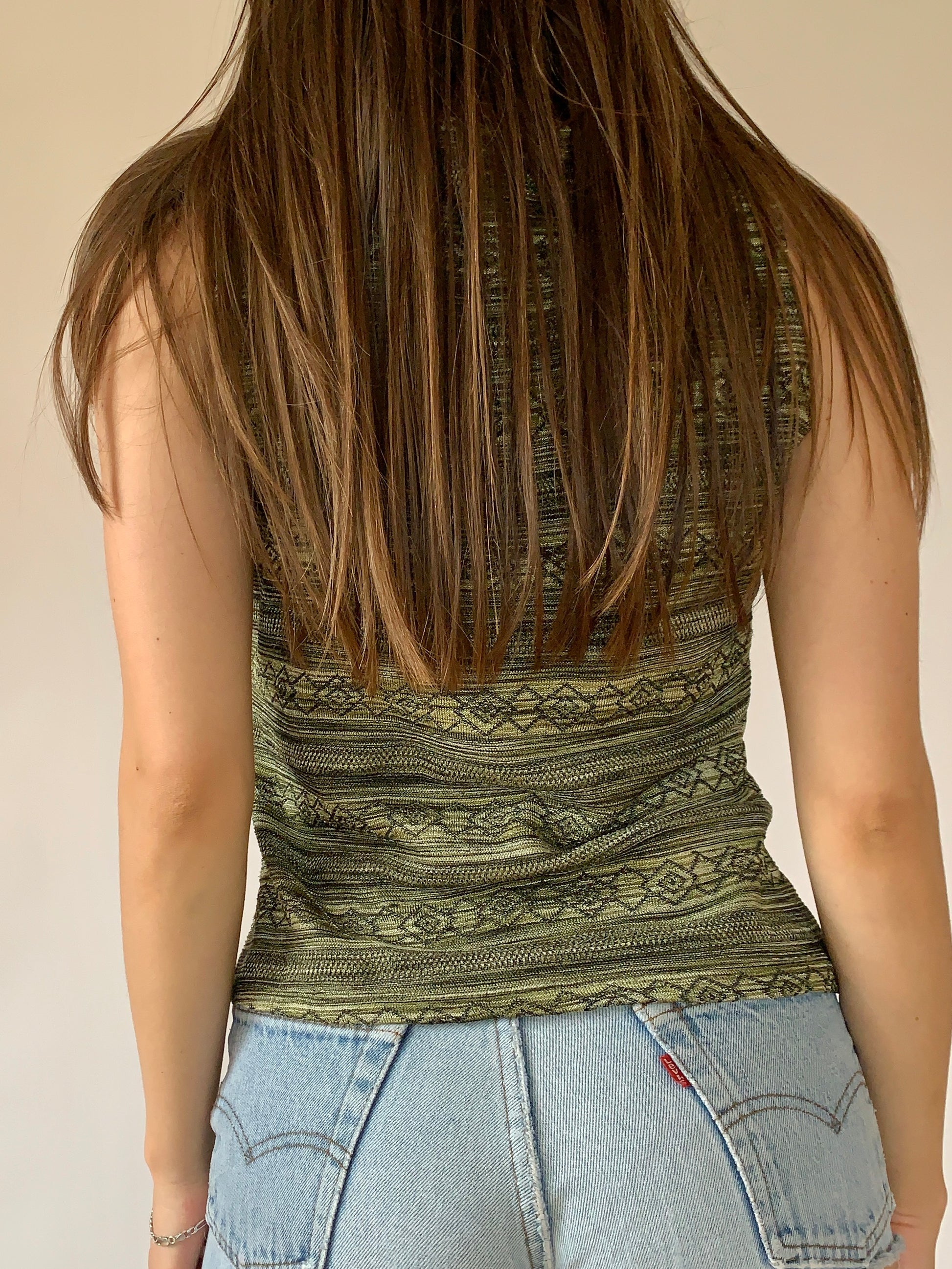 Y2K Hiatus Tank. In olive. Made in USA. In excellent condition. Tagged size L, fits more like S-M.