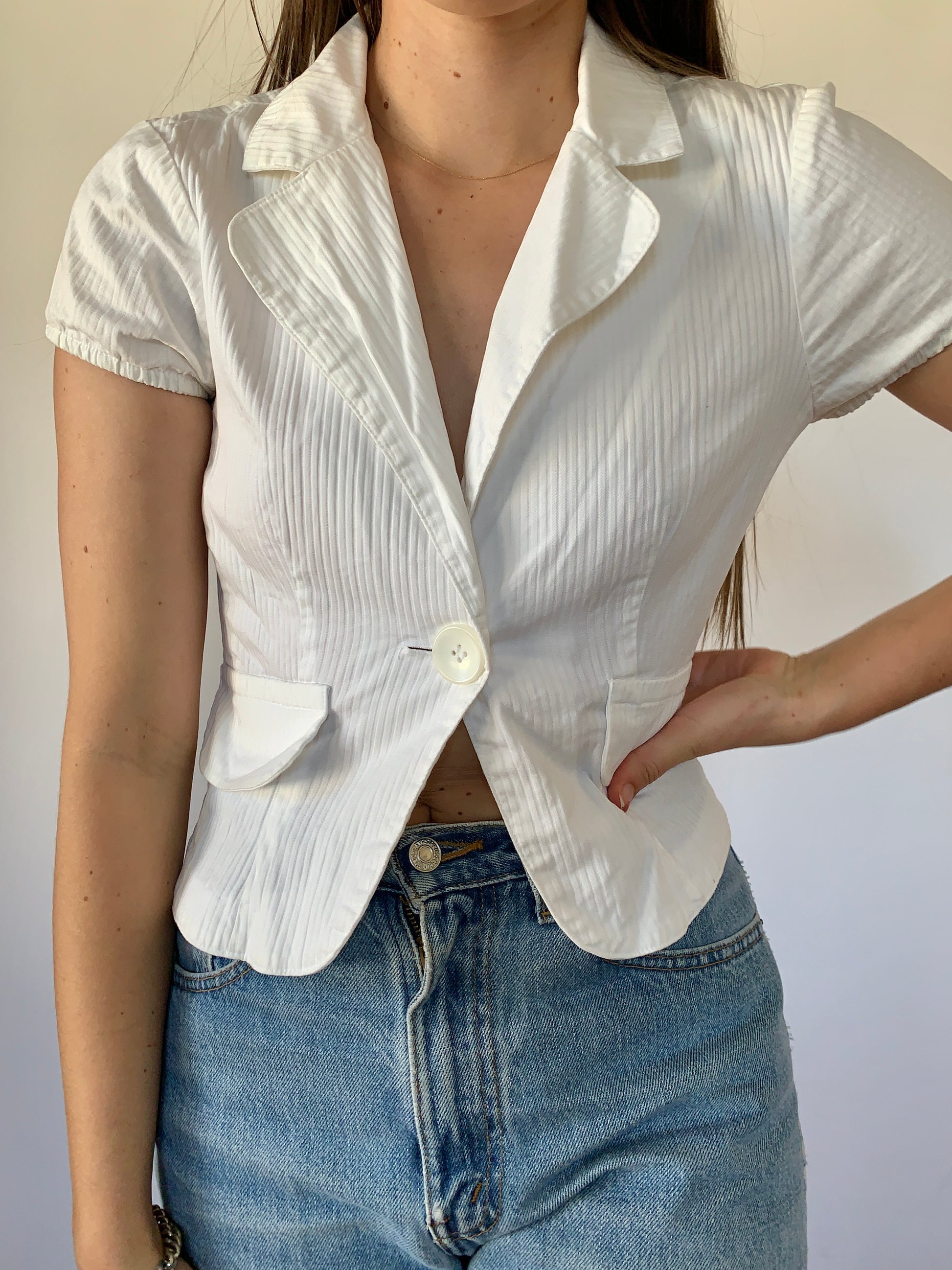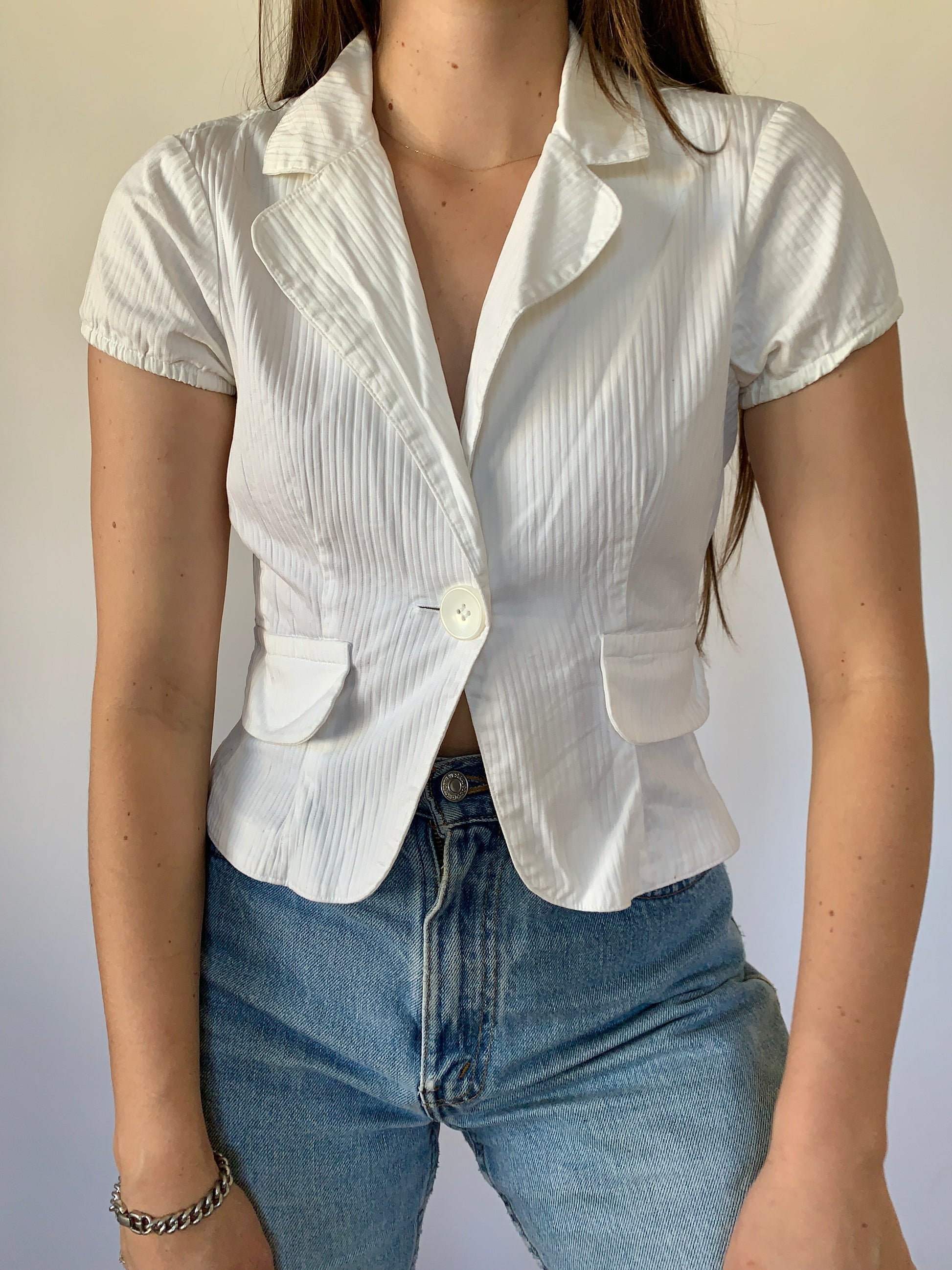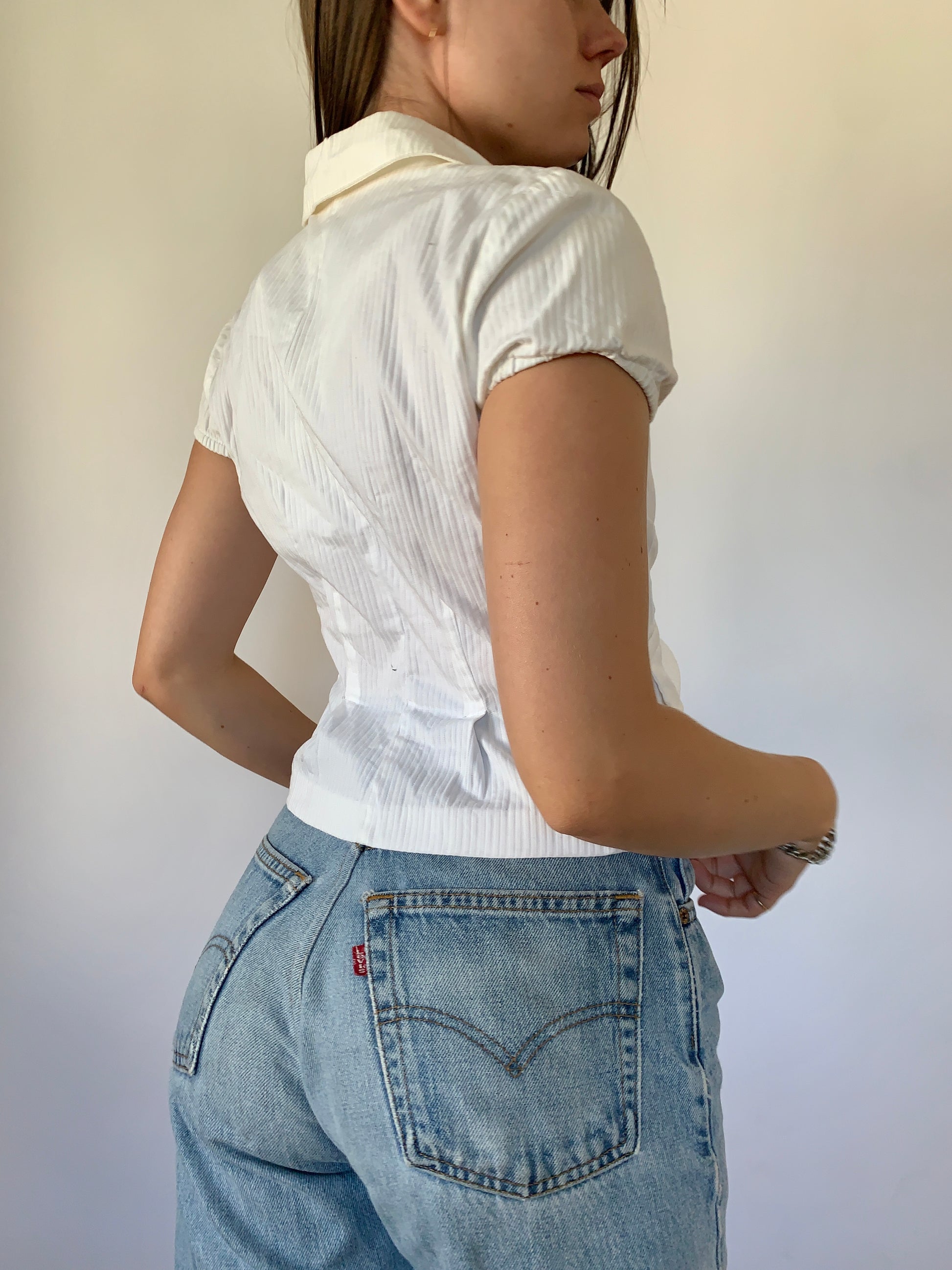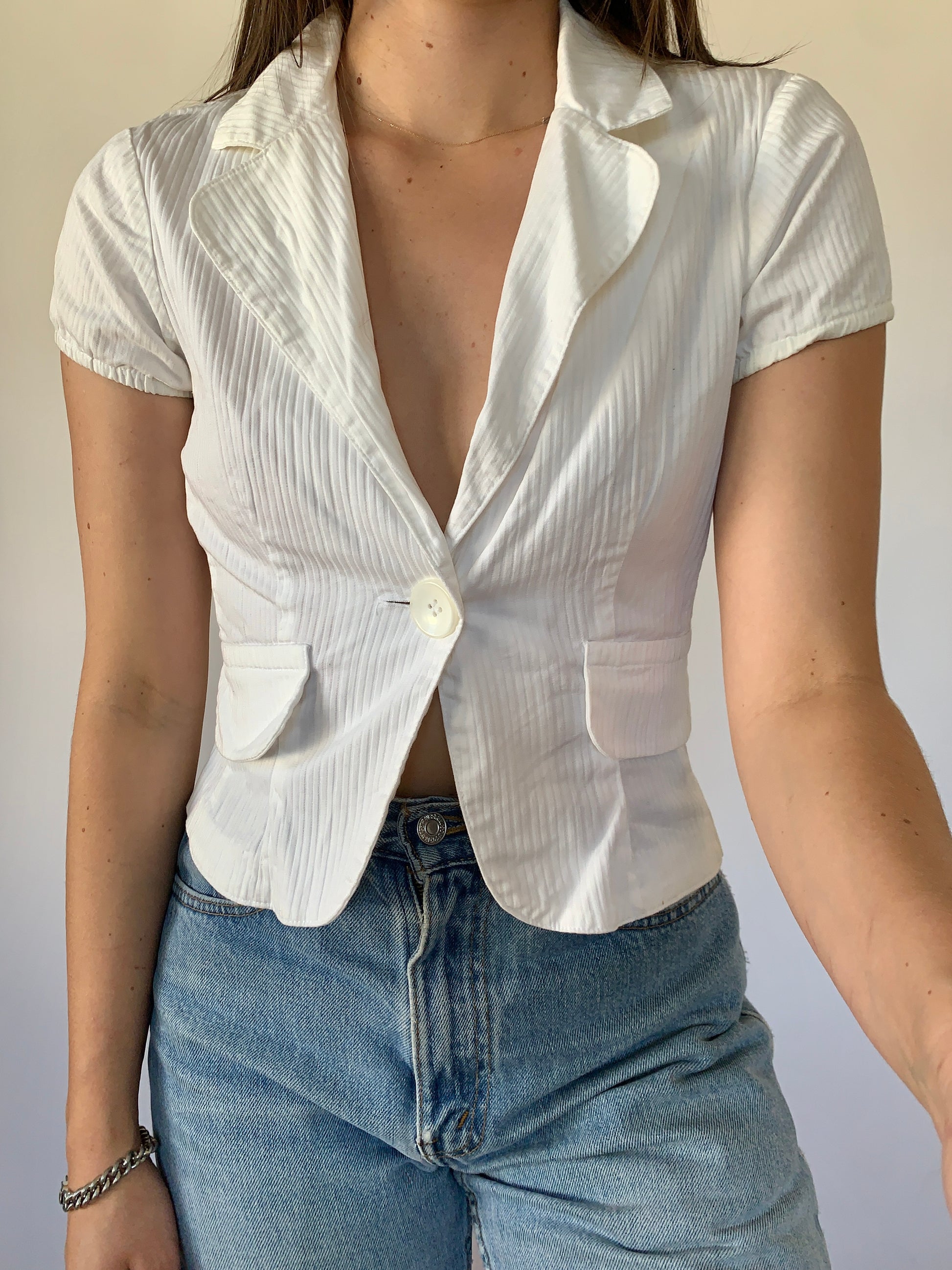 Y2K top by A-List. In white. Material is a cotton spandex blend. Excellent condition. Tagged size 3. Shown on size S.