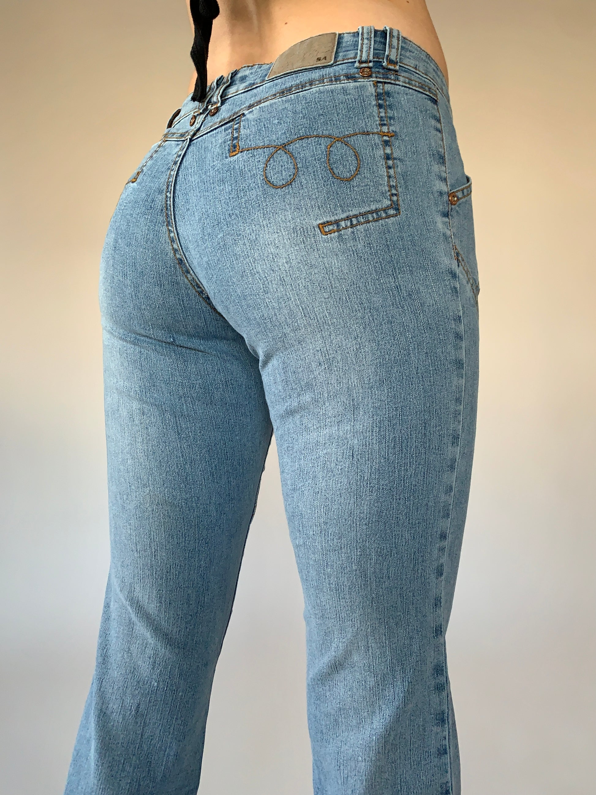 Y2K Val jeans. Low rise with flare. In a light wash. Material is a ramie/cotton/poly/spandex blend with stretch. In good condition. Tagged size 5, but best fits XXS-XS or 26-28” waist at low rise.